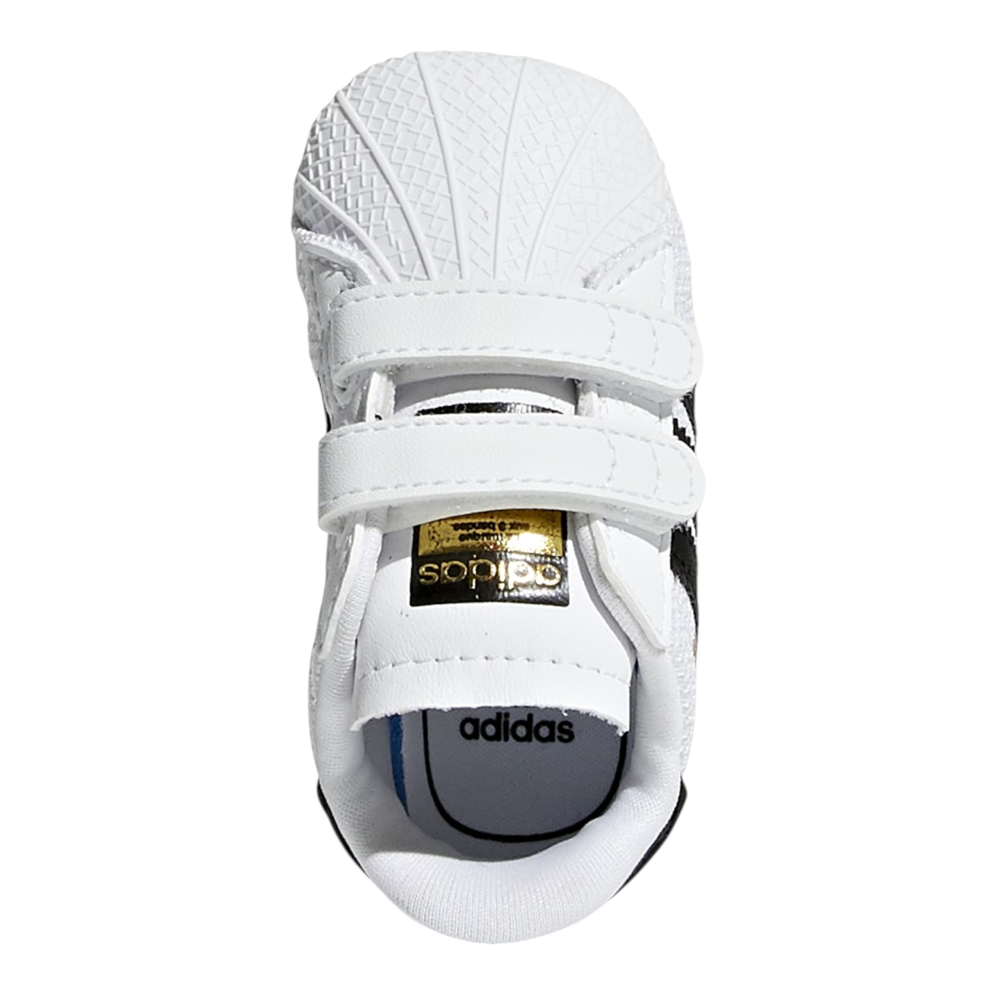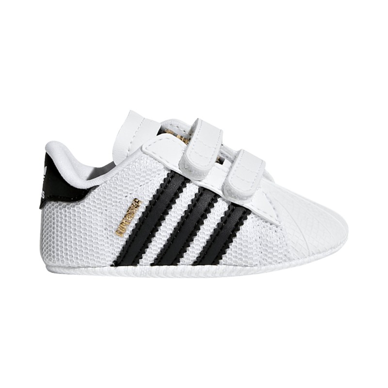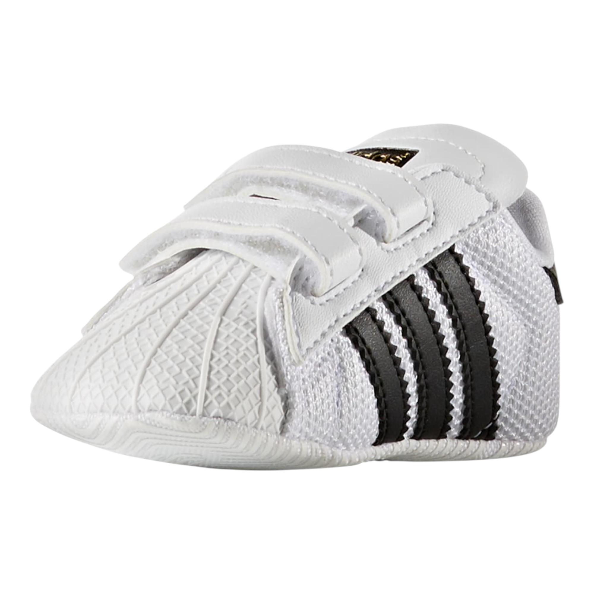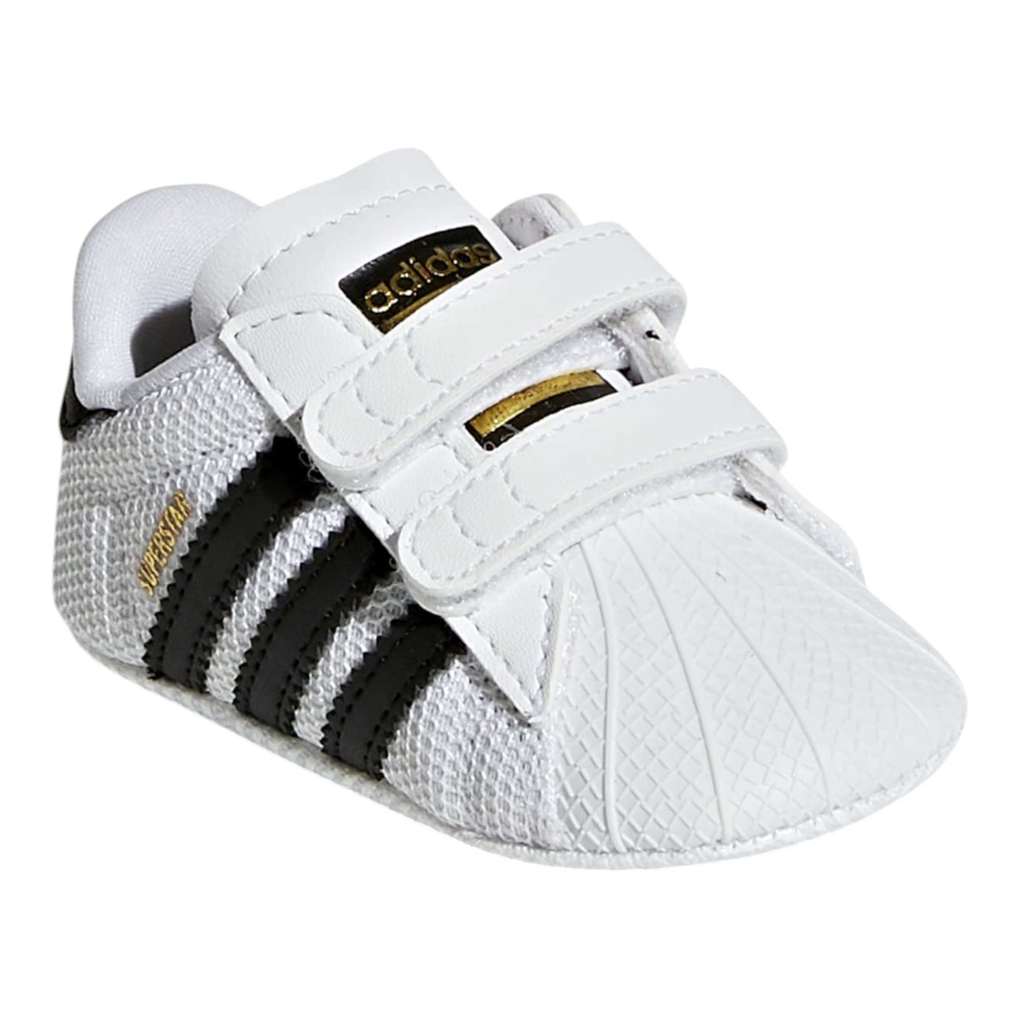 Queste scarpe sono realizzate per i più piccoli e rappresentano una versione in miniatura delle trainer adidas Superstar, iconica punta a conchiglia compresa. La tomaia in pelle morbida e flessibile avvolge i piedini e i dettagli iridescenti riflettono la luce. Le chiusure a strappo garantiscono la massima praticità.
