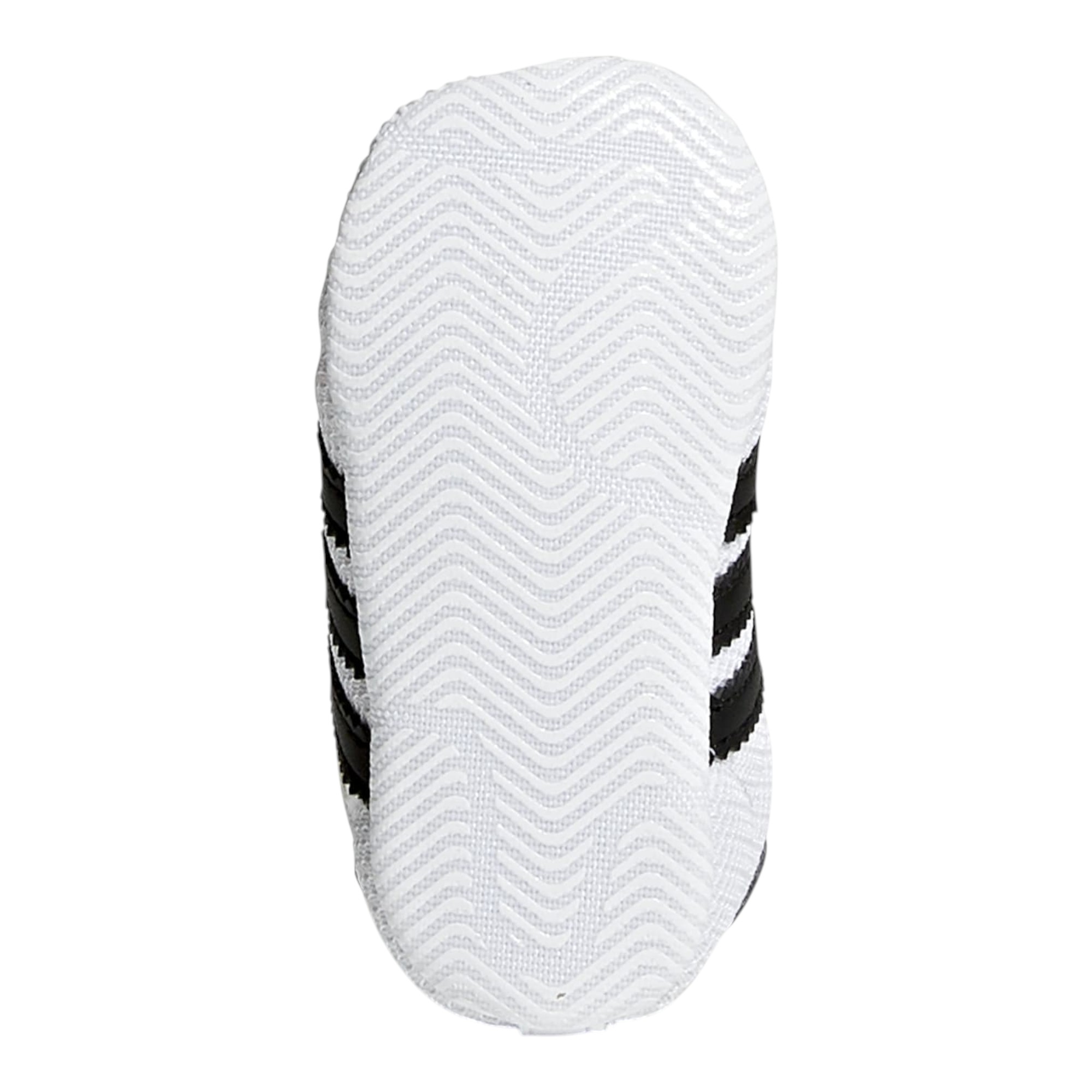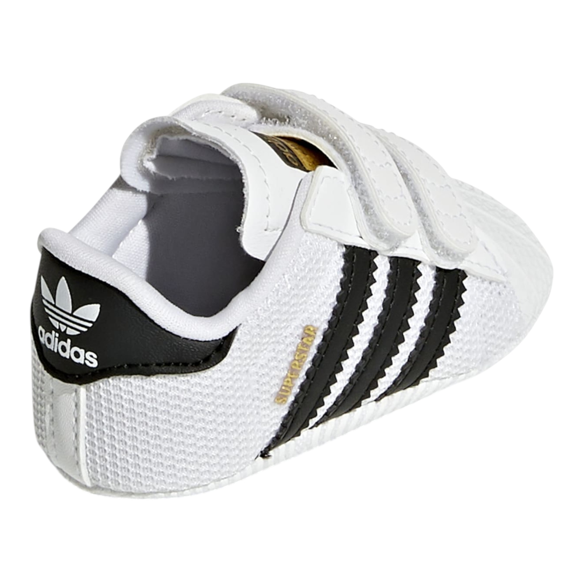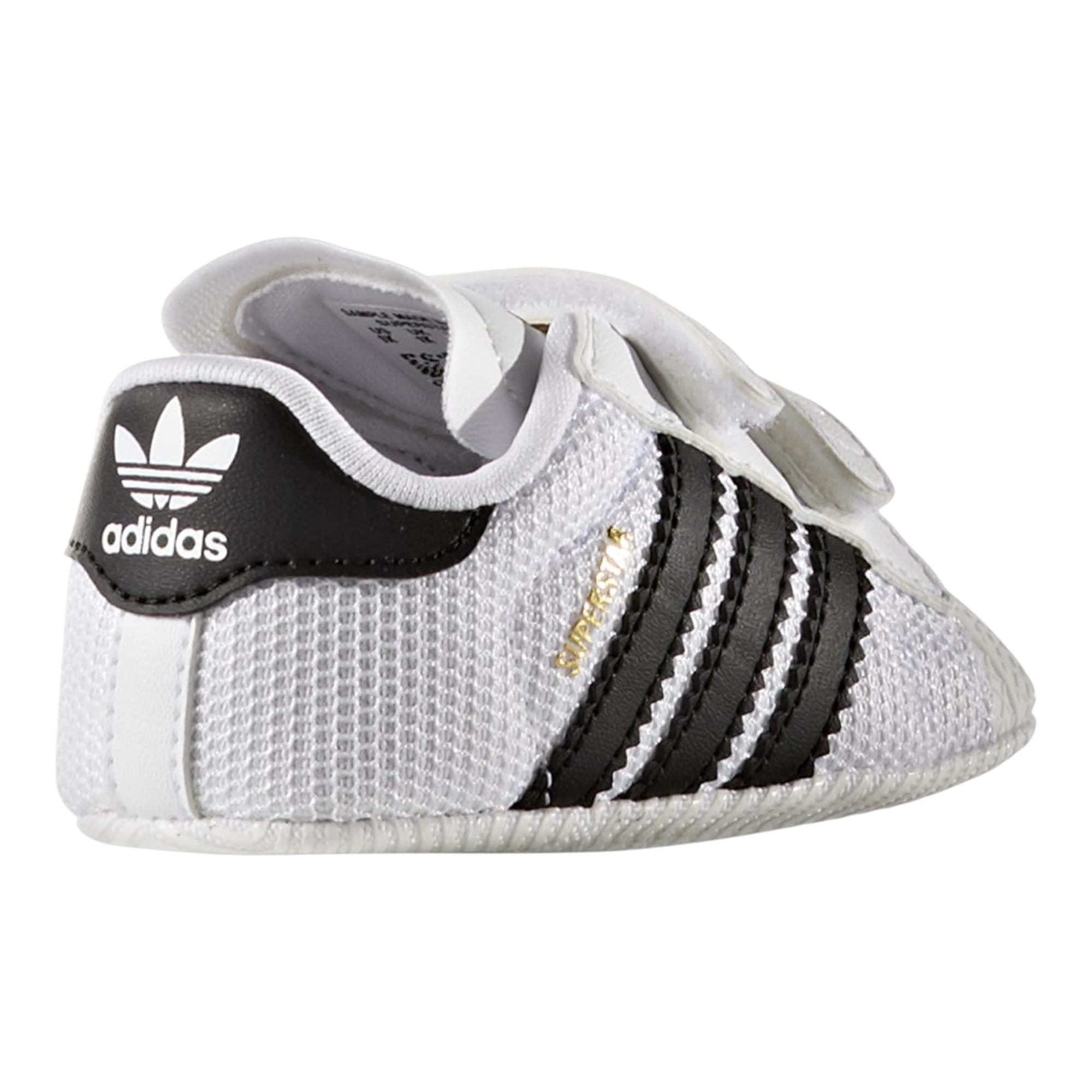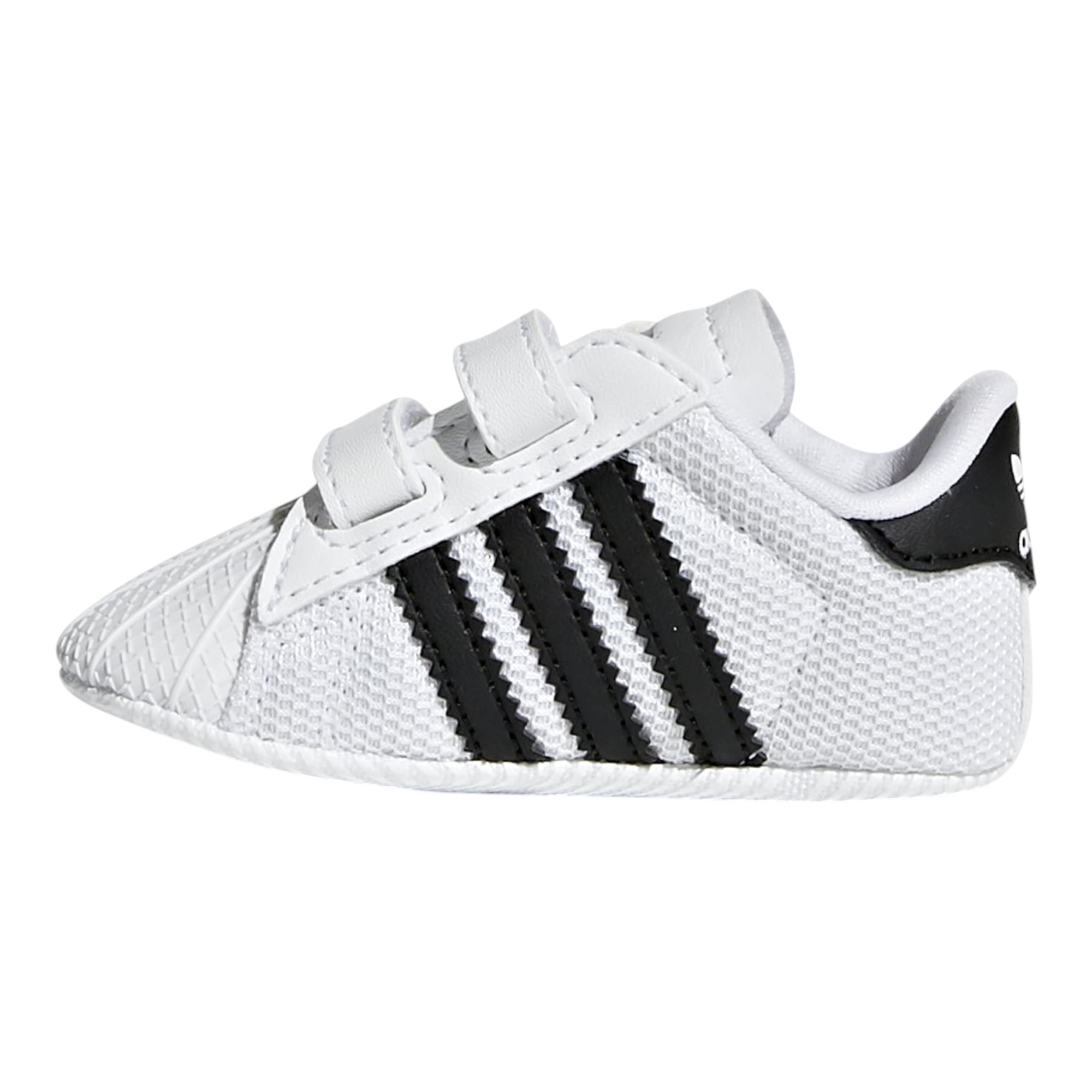 Queste scarpe sono realizzate per i più piccoli e rappresentano una versione in miniatura delle trainer adidas Superstar, iconica punta a conchiglia compresa. La tomaia in pelle morbida e flessibile avvolge i piedini e i dettagli iridescenti riflettono la luce. Le chiusure a strappo garantiscono la massima praticità.