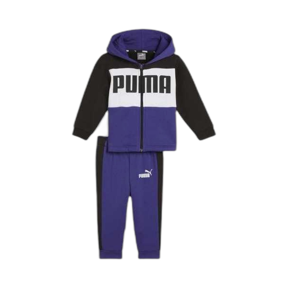 Tuta completa in cotone; felpa con logo, cappuccio e zip, pantalone con vita elasticizzata, polsini e orlo dritto.
