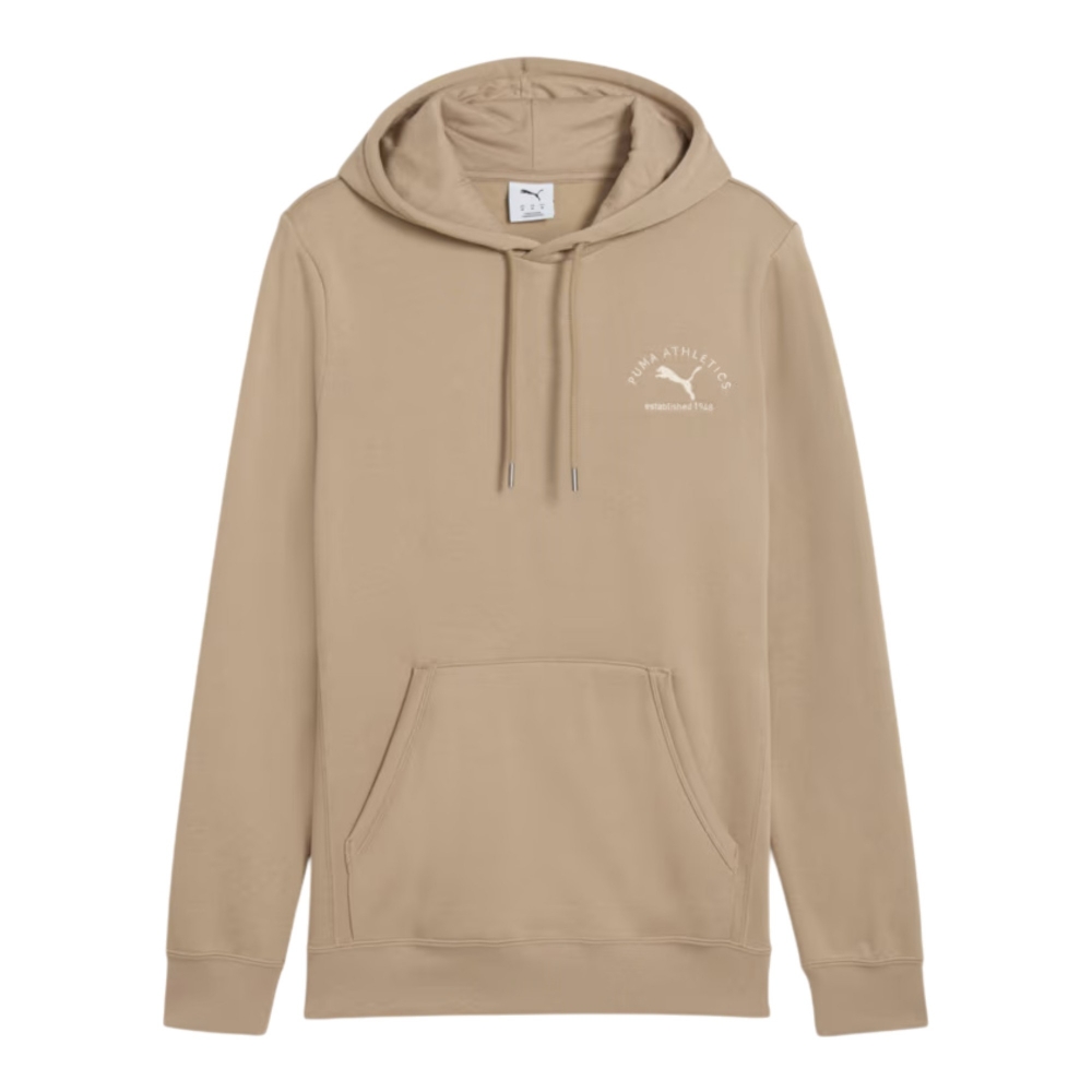 Felpa in cotone felpato, collo con cappuccio, spalle regolari, maniche lunghe, logo a contrasto fronta e posteriore, tasca a marsupio, orlo dritto.