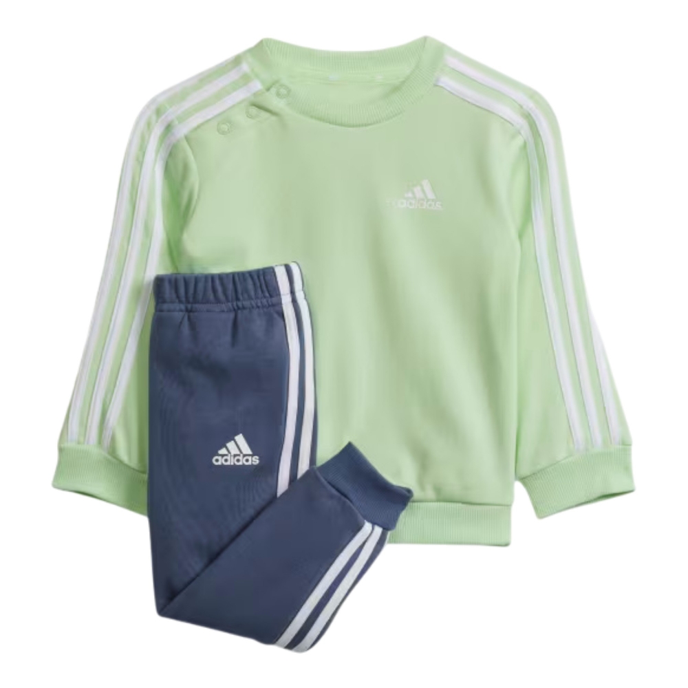 Tuta adidas in cotone felpato, soffice e comoda per i più piccoli. La colorazione verde con dettagli blu e bianchi offre uno stile sportivo e vivace, ideale per ogni momento di gioco.