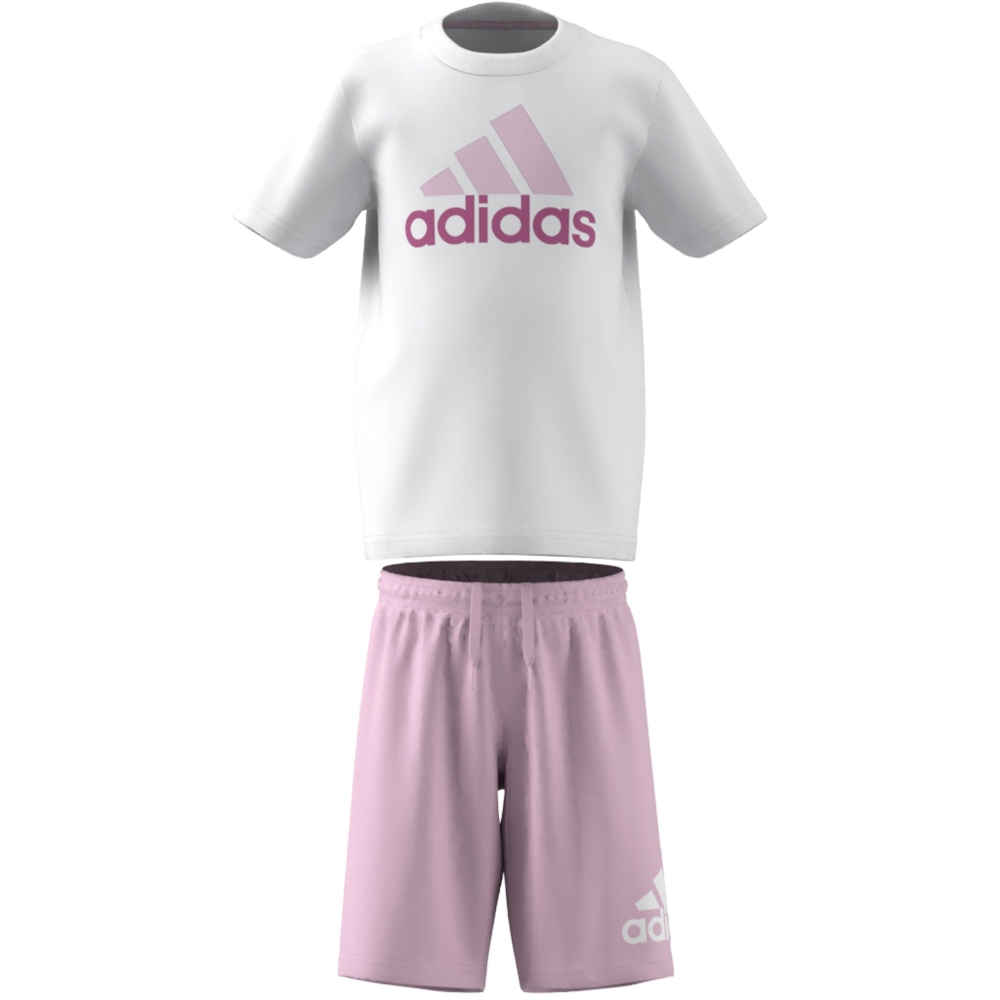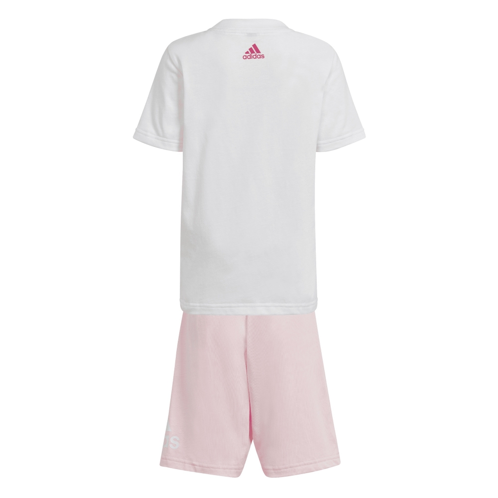 Set 2 pezzi di adidas è un completo da bambina perfetto per le giornate attive e di gioco. Realizzato in morbido cotone jersey, offre leggerezza e comfort sulla pelle. La t-shirt bianca con logo rosa chiaro e i pantaloncini coordinati creano un look sportivo e fresco, ideale per il tempo libero o le attività estive.