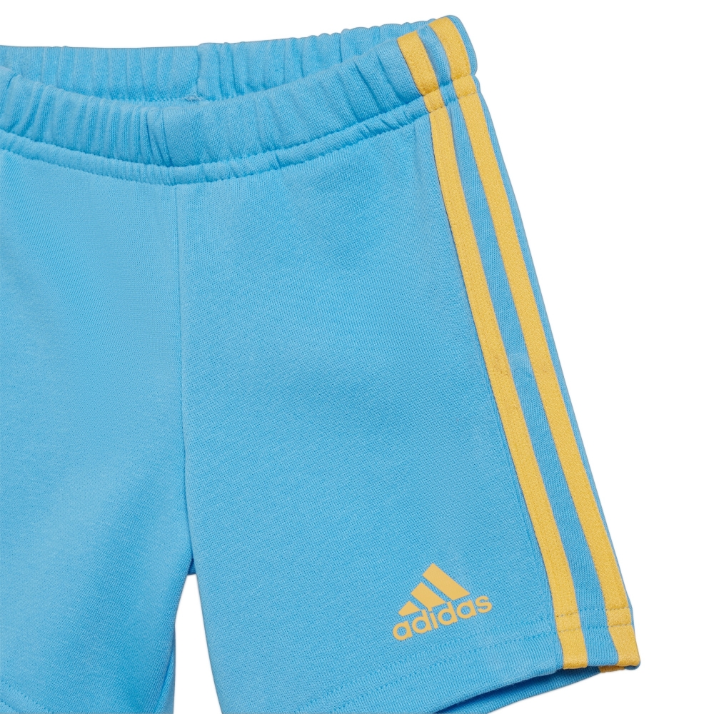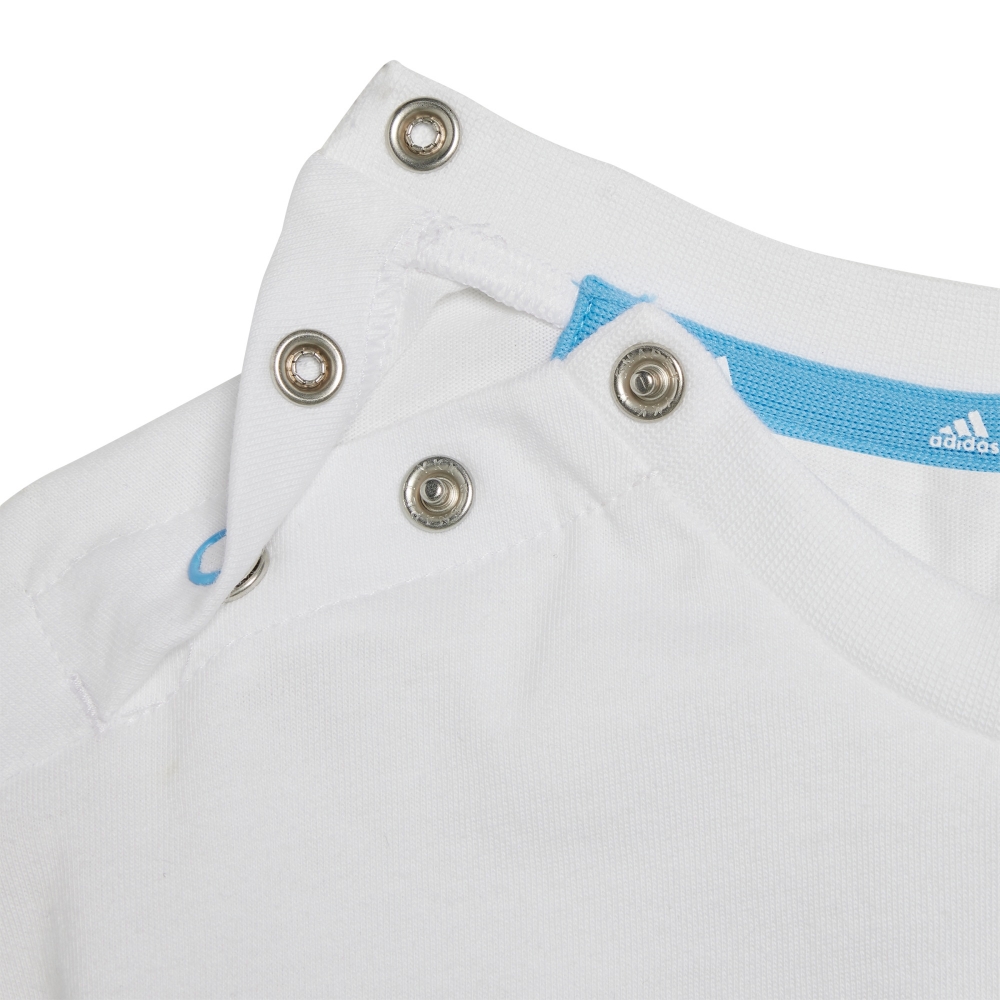 Set adidas in morbido jersey di cotone, leggero e confortevole per il massimo comfort dei più piccoli. Il bianco con dettagli blu dona uno stile fresco e allegro, perfetto per la stagione.