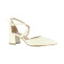 Decolletè in similpelle, punta ovale, fettucce intrecciate con fibbia regolabile, tallone rinforzato, suola con tacco quadrato.