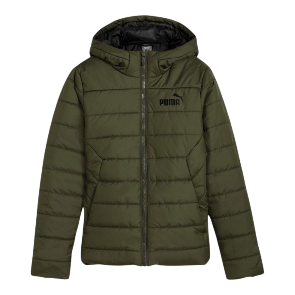Giacca in nylon trapuntato, collo con cappuccio, spalle regolari, maniche lunghe, chiusura con zip, logo a contrasto, 2 tasche america, orlo dritto.