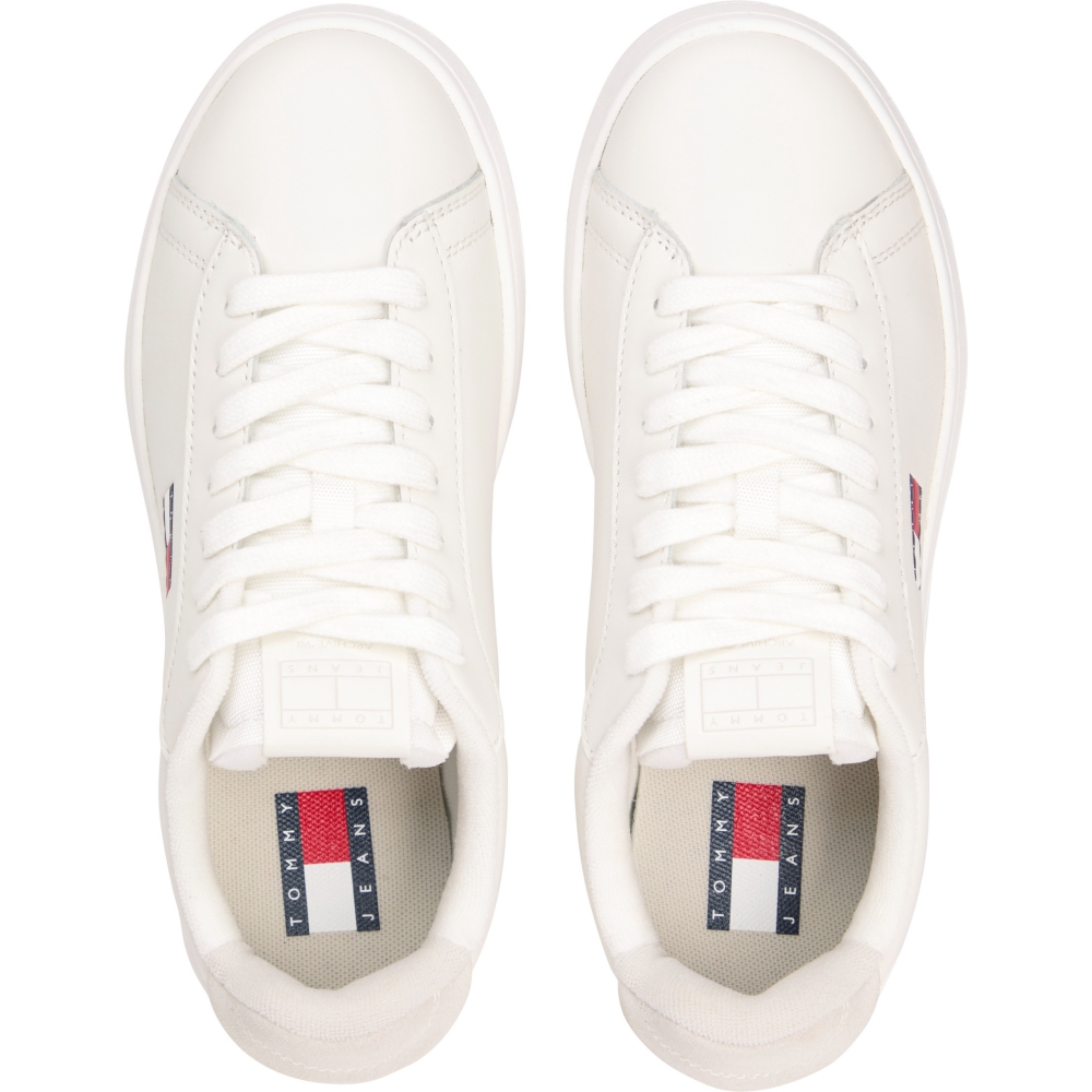 Sneakers sportive in vera pelle, linguetta con patch logo, chiusura con lacci, punta tonda, bandierina Tommy laterale a contrasto, tallone rinforzato, suola in gomma.