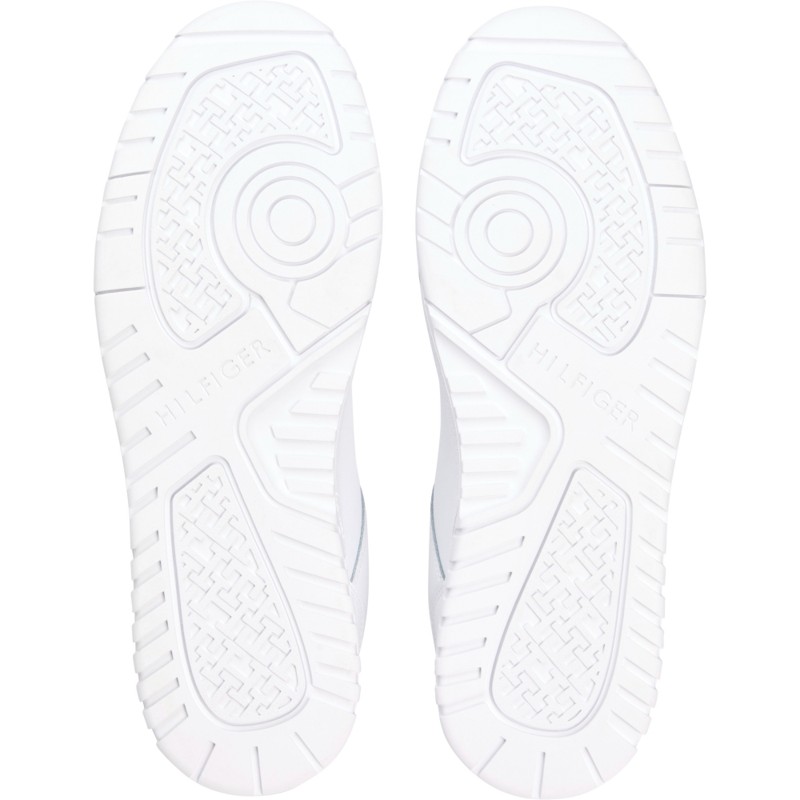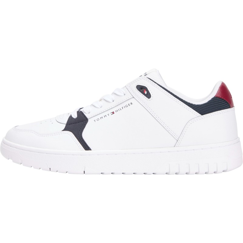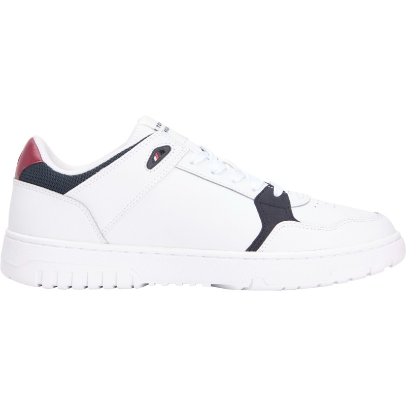 Sneakers in vera pelle ispirate al mondo del basket, sono ideali per aggiungere un pizzico di originalità ai tuoi outfit, interni in tessuto sintetico, suola antiscivolo sottile in gomma, fori per la ventilazione sull'esterno, linguetta in tessuto a costine con patch logo a contrasto, chiusura con lacci, tallone con bandierina Tommy Hilfiger gommata.