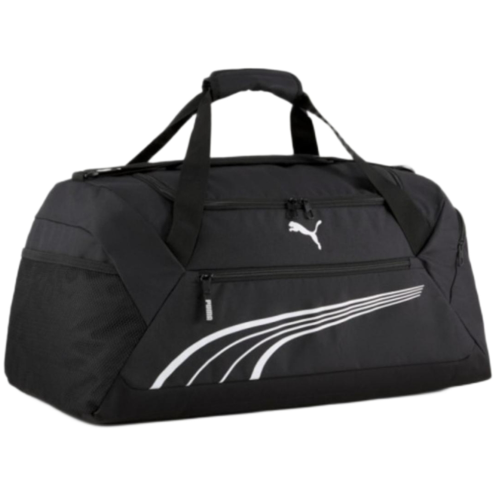 Borsa sportiva Puma di medie dimensioni, ideale per palestra e tempo libero. Il design essenziale in colore nero garantisce versatilità, mentre la struttura capiente permette di trasportare comodamente abbigliamento e accessori. Realizzata in tessuto tecnico resistente, è pensata per un utilizzo pratico e quotidiano, offrendo funzionalità e durata nel tempo.