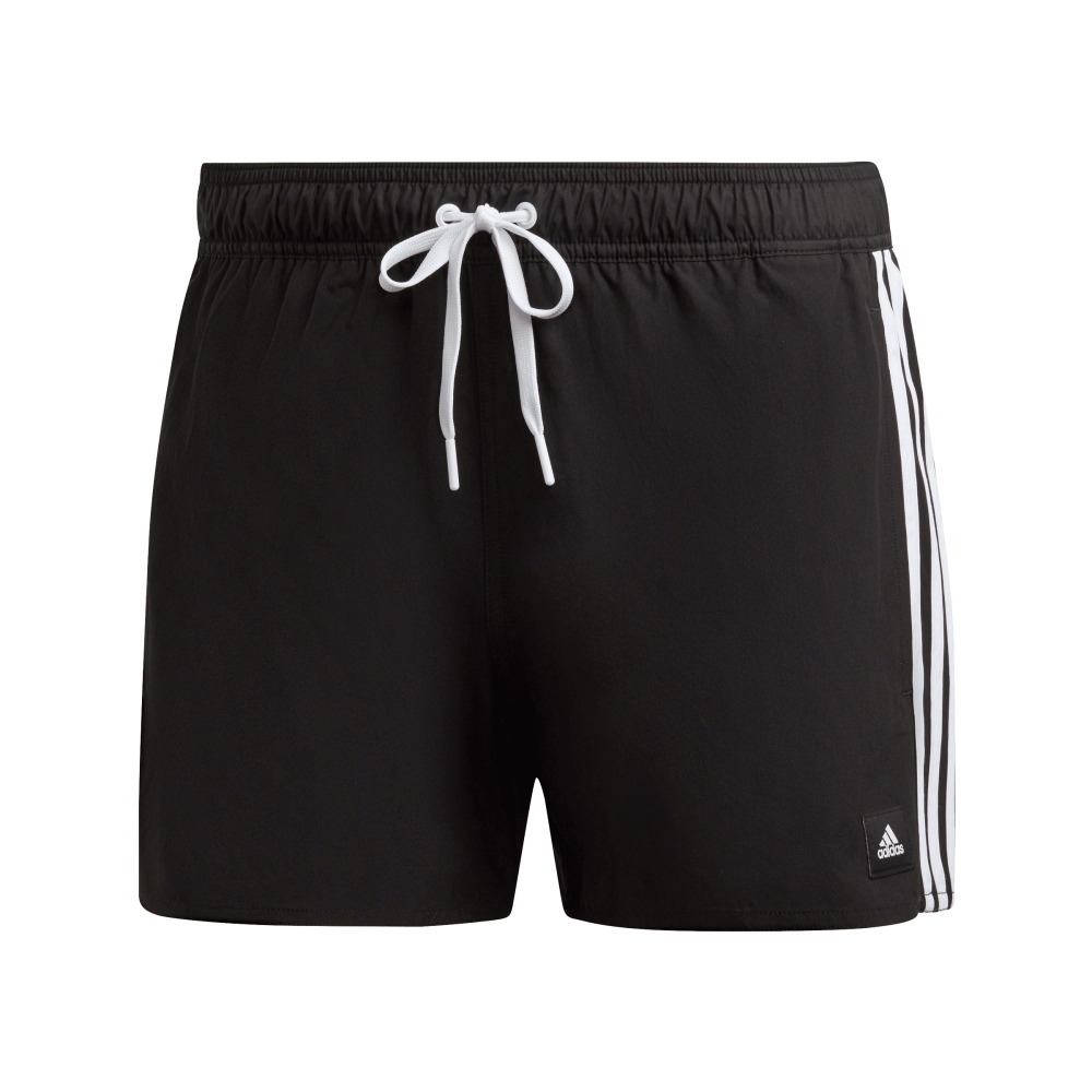 offrono comfort e libertà di movimento dentro e fuori dall’acqua. Realizzati in tessuto plain weave leggero e ad asciugatura rapida, garantiscono praticità e resistenza. Il design nero con le iconiche tre strisce bianche aggiunge un tocco sportivo e intramontabile, perfetto per la spiaggia o la piscina.