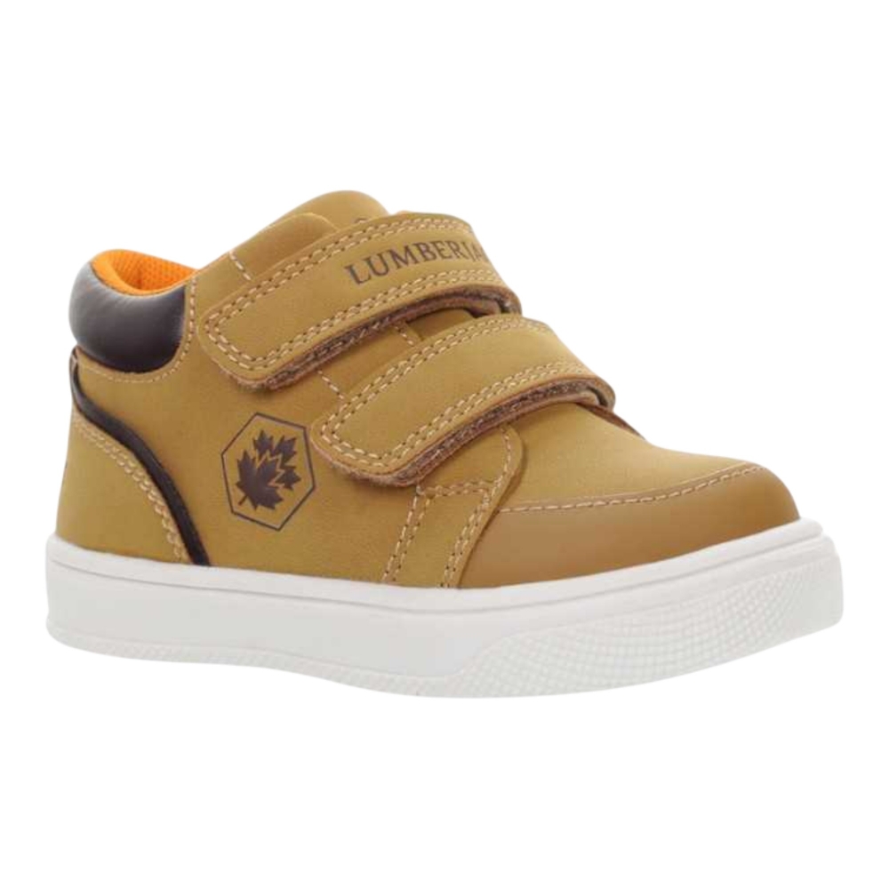 Polacchino in simil nubuk, linguetta con logo inciso, 2 fettucce in velcro, punta tonda, tallone rinforzato, suola in gomma.
