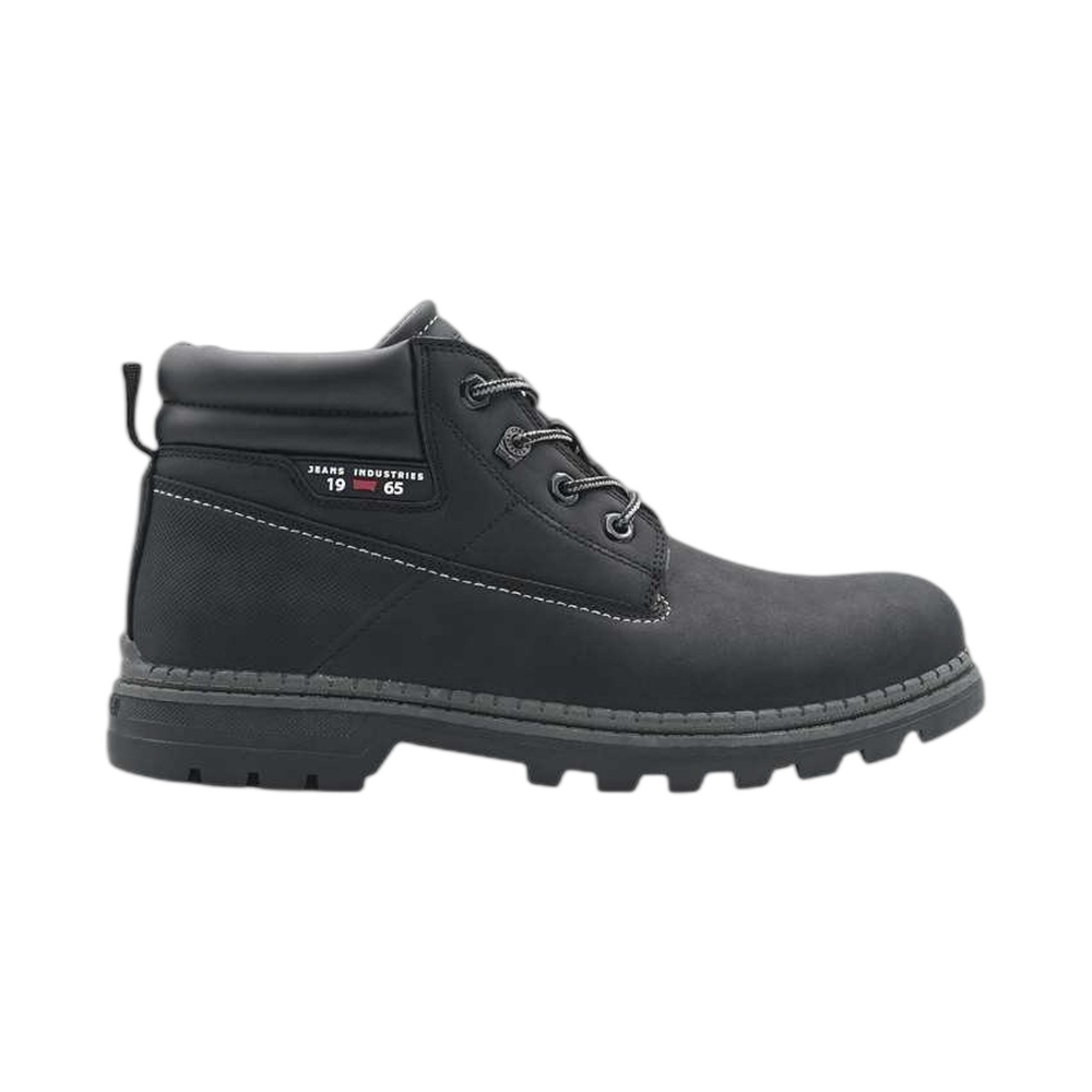 Polacchino in simil nubuk, linguetta, chiusura con lacci, punta tonda, tallone rinforzato, suola in gomma.