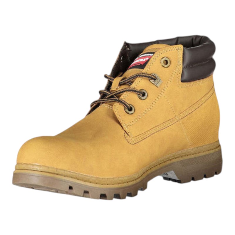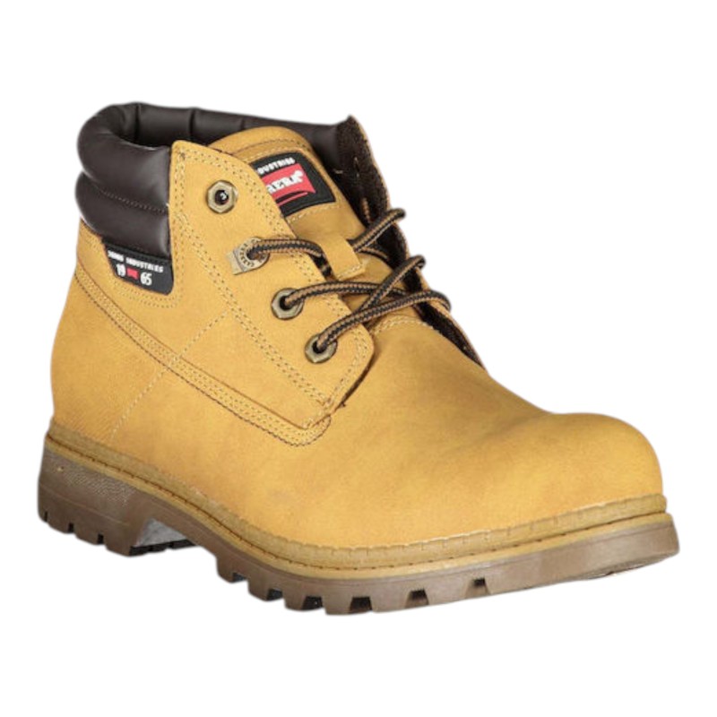 Polacchino in simil nubuk, linguetta, chiusura con lacci, punta tonda, tallone rinforzato, suola in gomma.