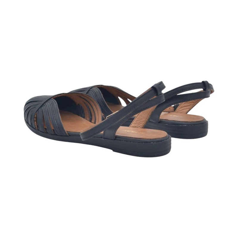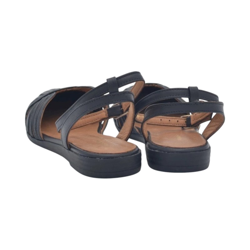 Sandalo a ragnetto in vera pelle, punta tonda, cinturino regolabile alla caviglia, sottopiede in vera pelle, suola in gomma.