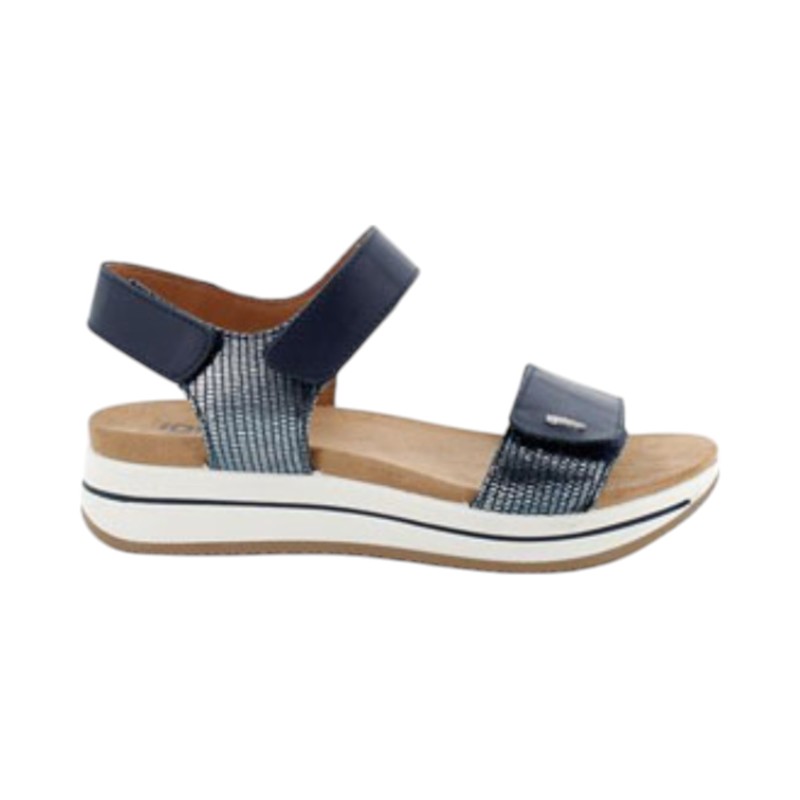 Sandalo in vera pelle e profili laminati, fettuccia in velcro, cinturino alla caviglia in velcro, fettuccia posteriore in velcro, suola in gomma.
