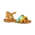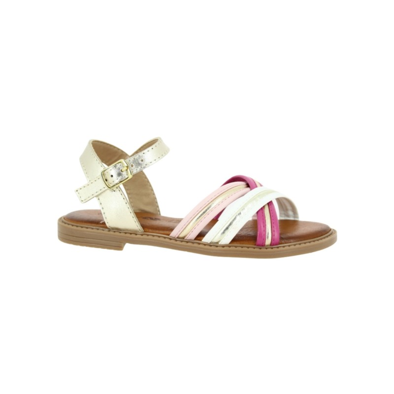 Sandalo in vera pelle, fettucce con dettagli laminati, cinturino con fibbia regolabile, sottopiede in vera pelle, suola in gomma.