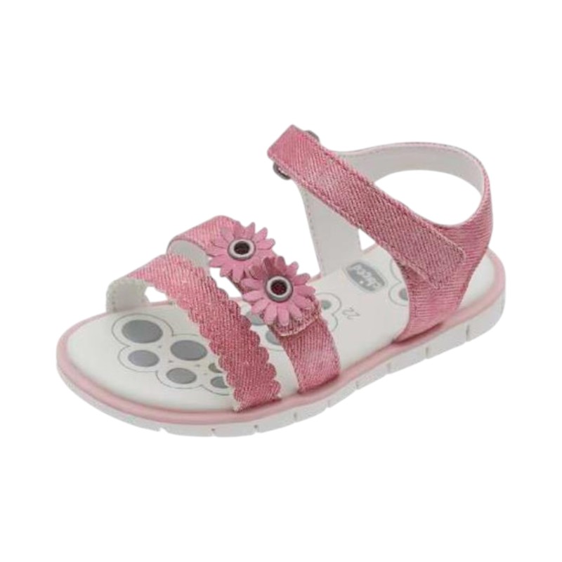 Sandalo in similpelle, doppia fascia con patch floreale con dettagli intagliati, cinturino alla caviglia in velcro,