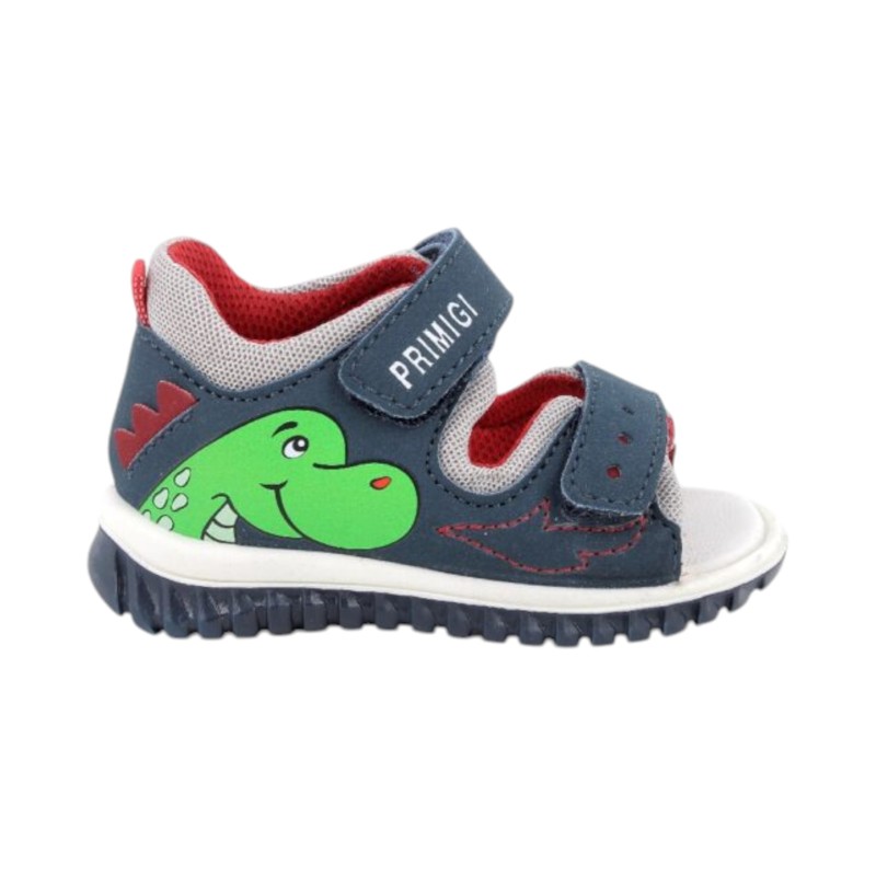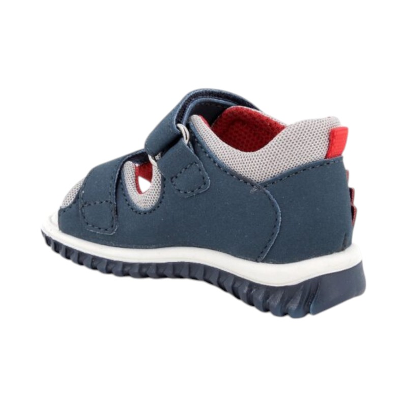 Sandalo in simil nubuk e mesh, 2 fettucce in velcro con logo a contrasto, stampa grafica laterale, suola in gomma.