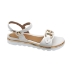 Sandalo in similpelle, fascia con dettaglio in metallo e strass, cinturino alla caviglia con fibbia, sottopiede in vera pelle, suola in gomma.