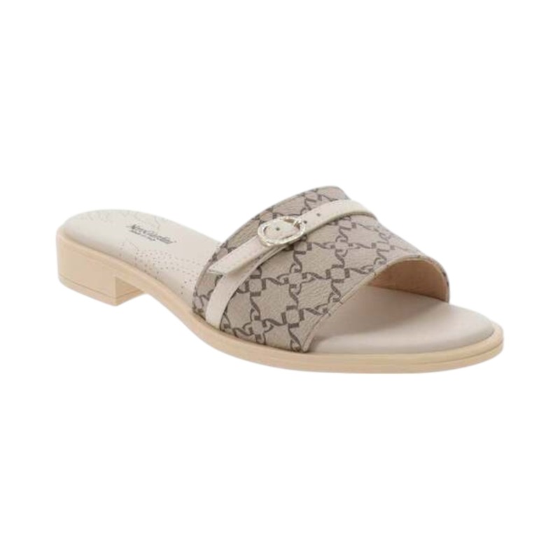 Sandalo a ciabatta in similpelle, fascia con monogram all over e fibbia regolabile, sottopiede in pelle, suola in gomma.