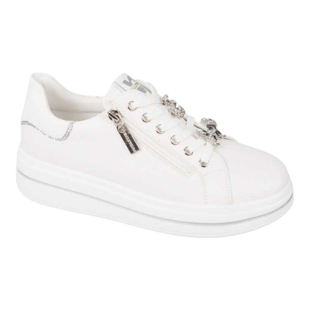 La sneaker da donna VALLEVERDE in ecopelle bianca è una calzatura dal design pulito e moderno, perfetta per chi desidera unire comfort e stile in ogni momento della giornata. Realizzata in materiale sintetico di alta qualità, offre una texture morbida e resistente, facile da pulire e ideale per l’uso quotidiano. Il colore bianco, luminoso e sempre attuale, dona un tocco di freschezza e versatilità, rendendo questa sneaker adatta a look casual, sportivi o più raffinati. La suola leggera e flessibile garantisce stabilità e comfort durante la camminata, mentre i dettagli curati riflettono l’attenzione artigianale tipica del marchio. Una scarpa essenziale e raffinata, pensata per la donna dinamica che ama la semplicità elegante e la qualità firmata VALLEVERDE.