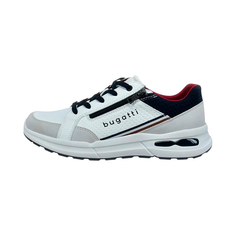 Sneakers in similpelle e camoscio, linguetta in mesh, chiusura con lacci, logo a contrasto laterale, zip laterale decorativa, suola in gomma.