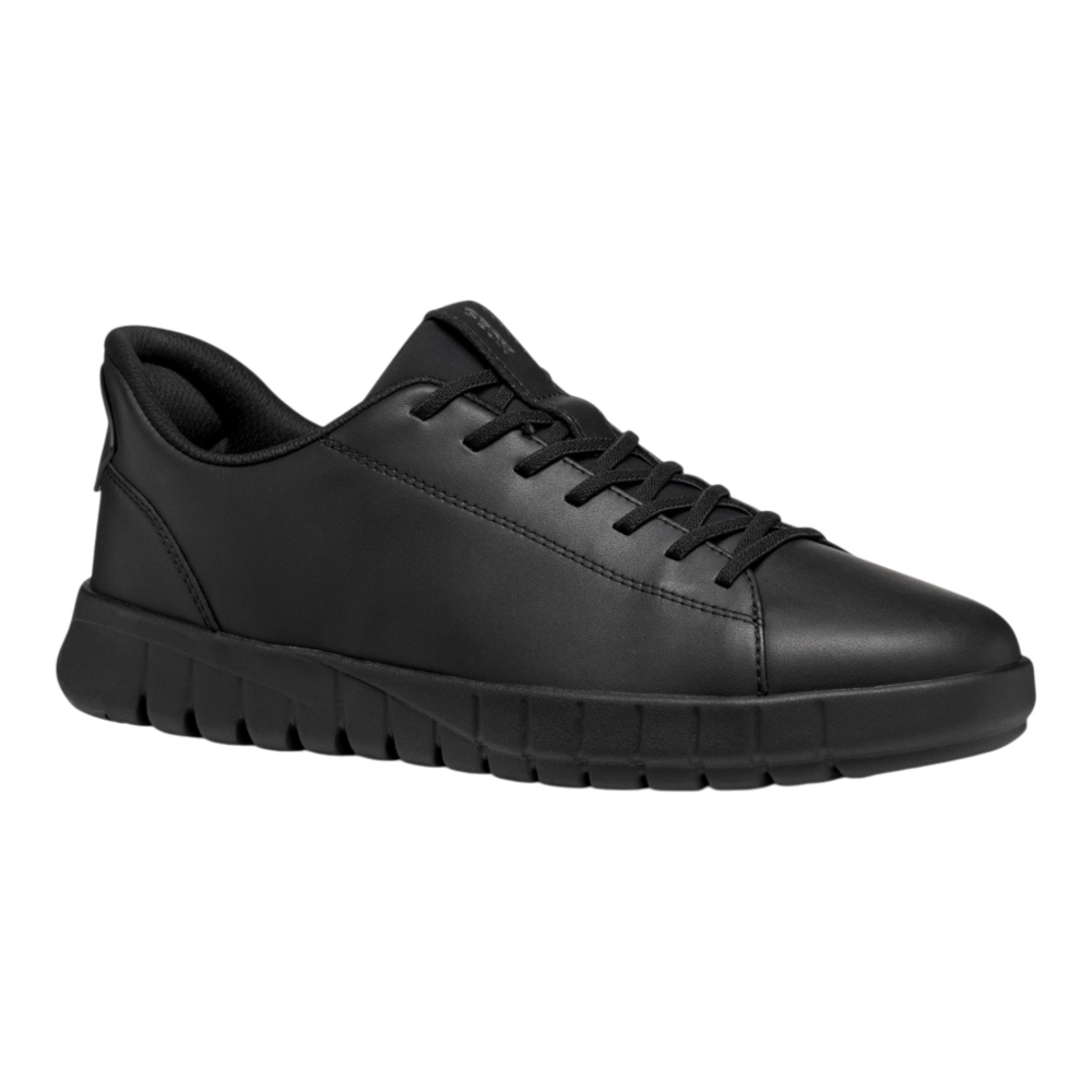 Sneakers in similpelle, linguetta, chiusura con lacci, punta tonda, tallone rinforzato con logo inciso, intersuola realizzata con tecnologia Respira, suola in gomma.