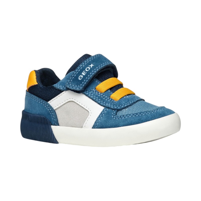 Sneakers in suede e mesh, linguetta in mesh, chiusura con lacci e fettuccia in velcro con logo a contrasto, punta tonda, tallone rinforzato, suola in gomma.
