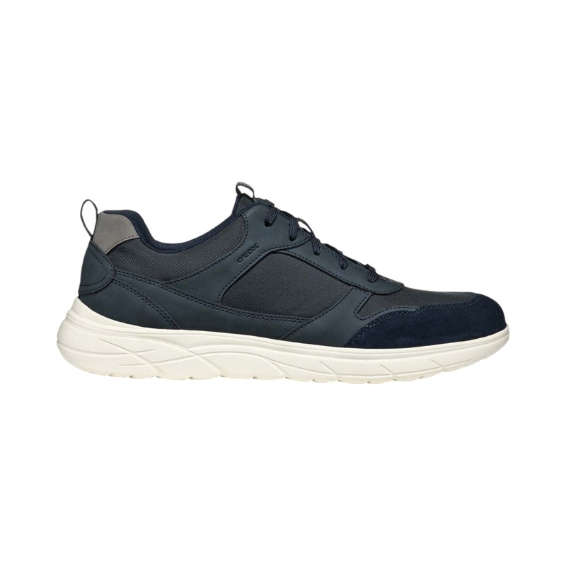 Sneakers in simil nubuk e tessuto, linguetta con tirante anteriore, chiusura con lacci, punta tonda, logo laterale inciso, soletta realizzata con tecnologia Respira, suola in gomma.