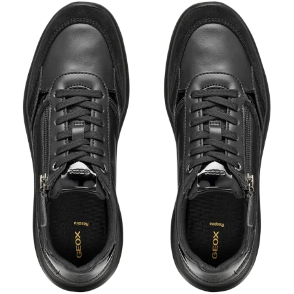 Le sneakers da donna Geox Plummery in pelle e camoscio nero uniscono eleganza e comfort in uno stile contemporaneo. Leggere e traspiranti grazie alla tecnologia Geox, garantiscono una calzata confortevole e un look sofisticato perfetto per ogni occasione casual chic.