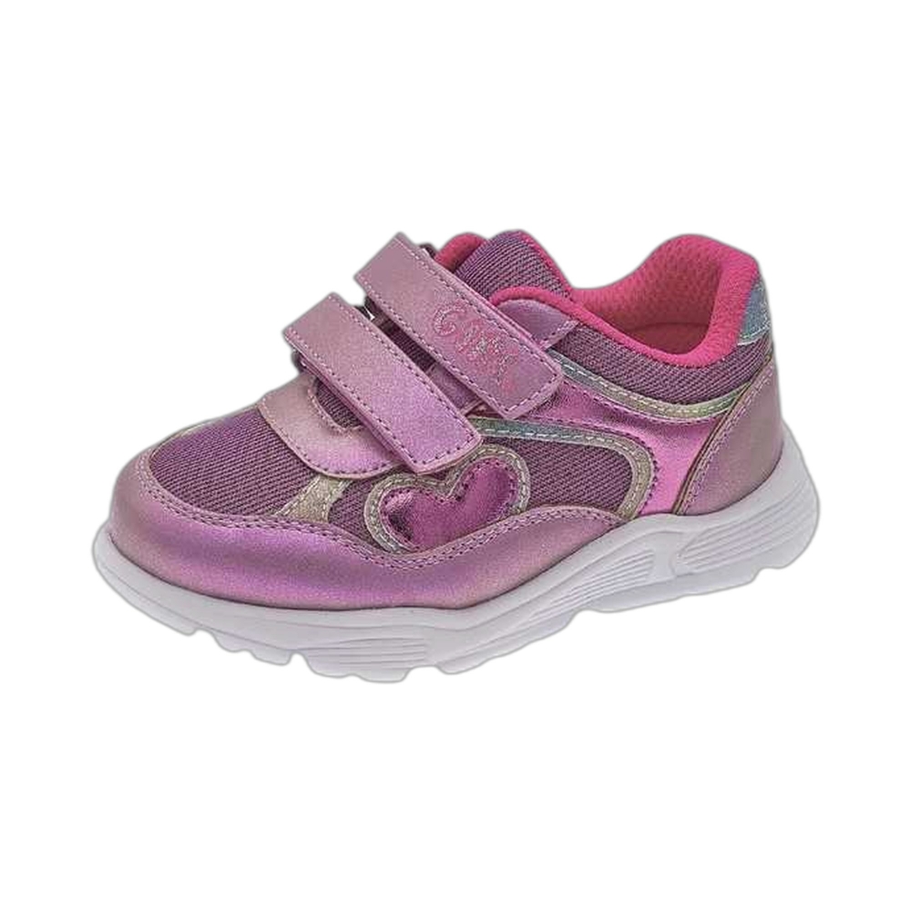 Sneakers in similpelle e tessuto laminato, linguetta, 2 fettucce in velcro, patch a cuore laterale a contrasto, punta tonda, suola in gomma.