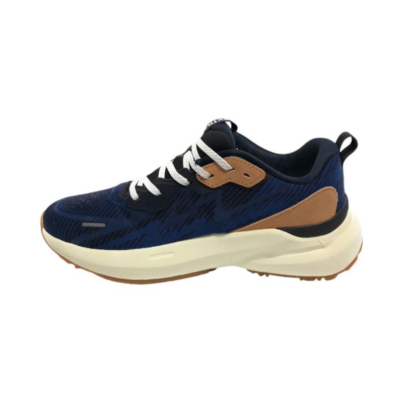 Sneakers in tela e camoscio, linguetta con patch logo, chiusura con lacci, punta tonda, interno in tessuto, suola in gomma.