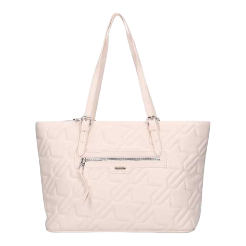 è una borsa capiente e raffinata, realizzata in poliuretano morbido e resistente. Con le sue dimensioni di 33x26x12 cm, offre spazio e stile in un design moderno dal finish argentato, ideale per ogni occasione quotidiana.