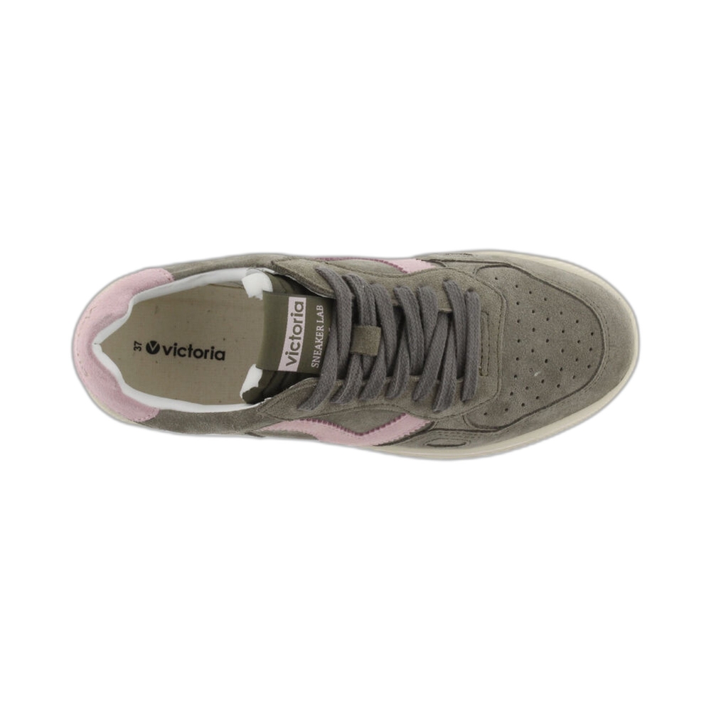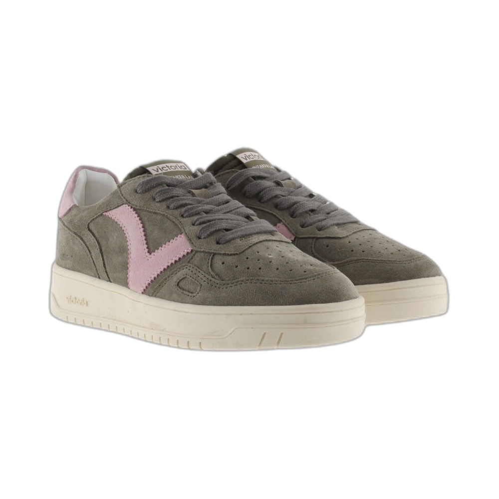 V laterale e inserto posteriore coordinati a contrasto, suola in gomma.