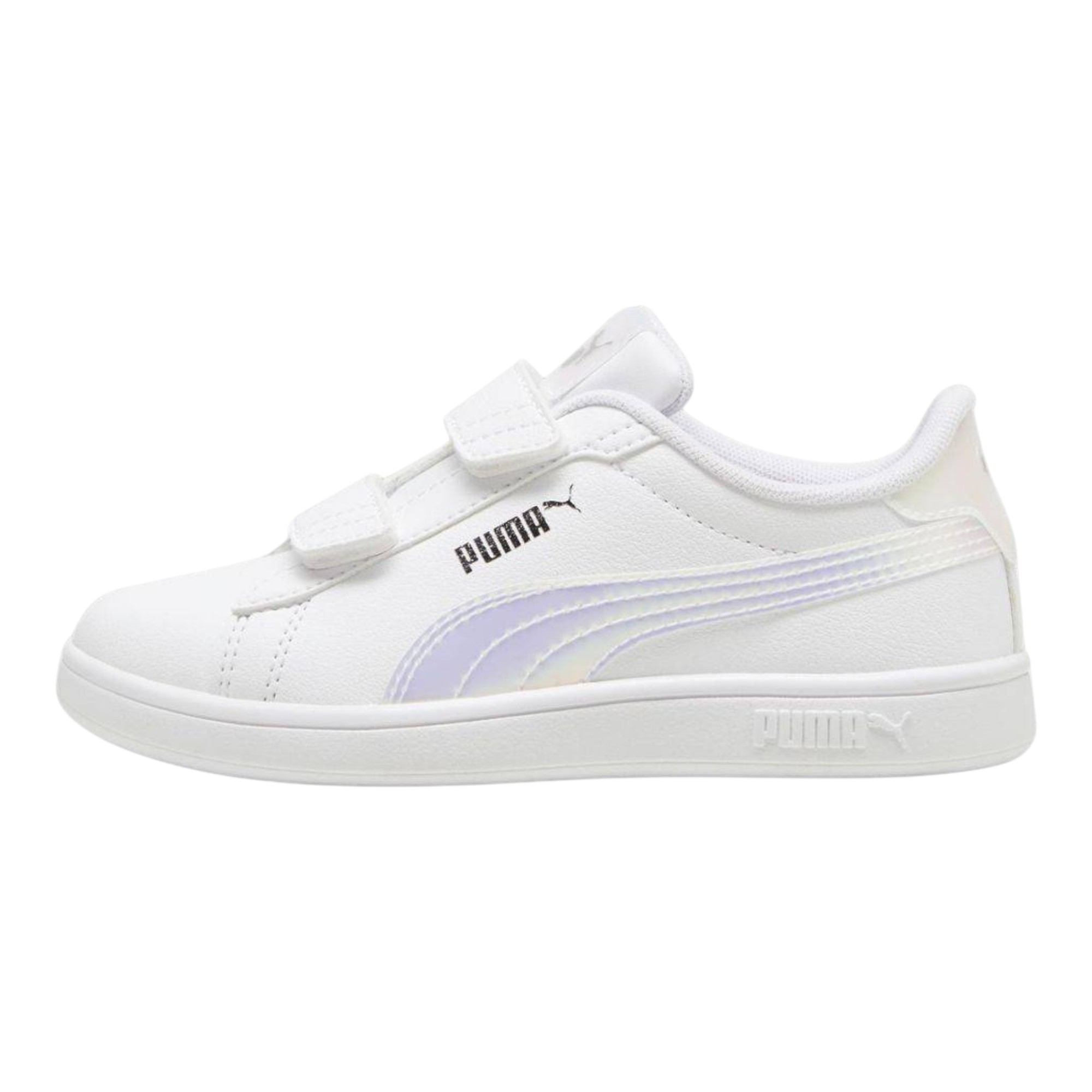 Sneakers Smash 3.0 in similpelle che rappresentano la nuova generazione dell'iconica serie PUMA Smash, pensata per incoraggiare il divertimento e il gioco, questa collezione di calzature e abbigliamento trae ispirazione dal calcio e dall'energia inesauribile dei bambini. I modelli presentano un marchio audace e grafiche giocose, ispirate agli archivi PUMA e al mondo del calcio. Queste sneaker presentano graziosi dettagli olografici.