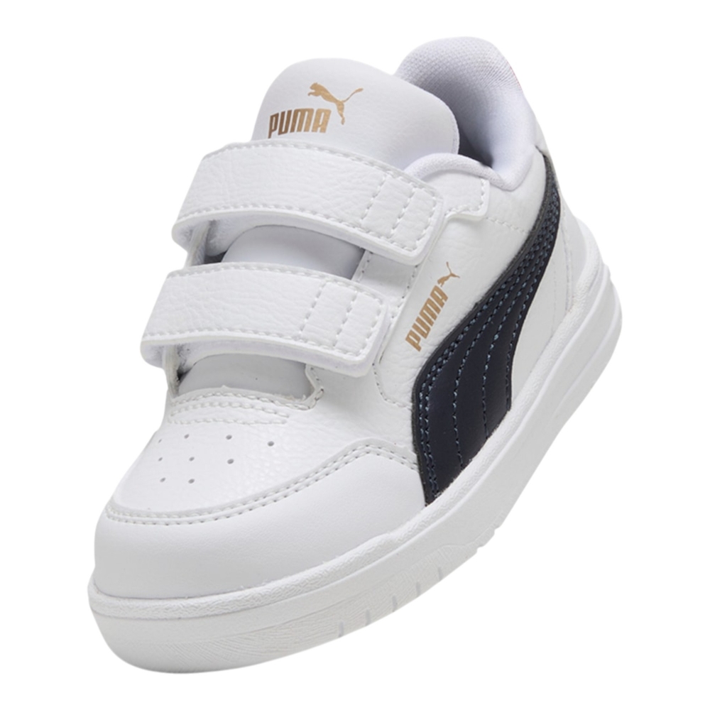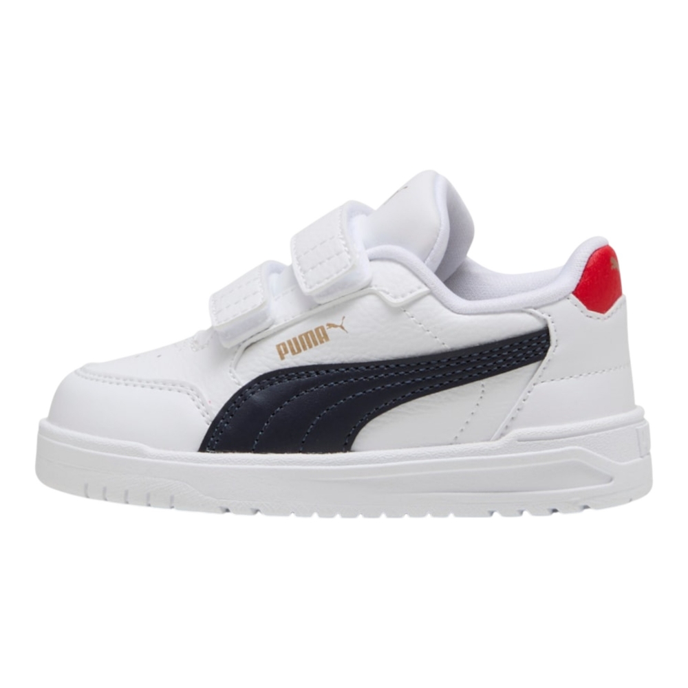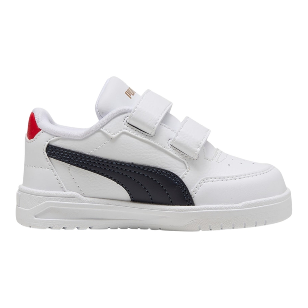 Le Puma Shuffle 03 da neonato reinterpretano il classico stile sportivo del brand in una versione confortevole e pratica, pensata per i più piccoli. Realizzate in pelle sintetica liscia, offrono una calzata morbida e resistente, perfetta per accompagnare i primi passi con stabilità e sicurezza. Il design in bianco con dettagli blu navy e rossi richiama l’inconfondibile estetica Puma, fresca e vivace, facilmente abbinabile a qualsiasi outfit quotidiano. La suola in gomma antiscivolo assicura aderenza e protezione, mentre la chiusura con strap a strappo facilita la calzata e rende queste sneakers ideali per i bambini in movimento. Un modello versatile, comodo e dal look intramontabile, perfetto per ogni occasione informale.