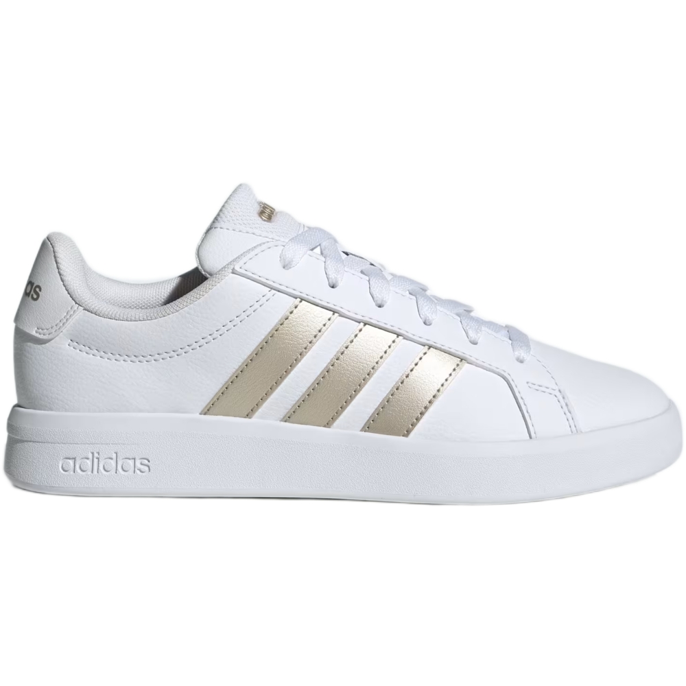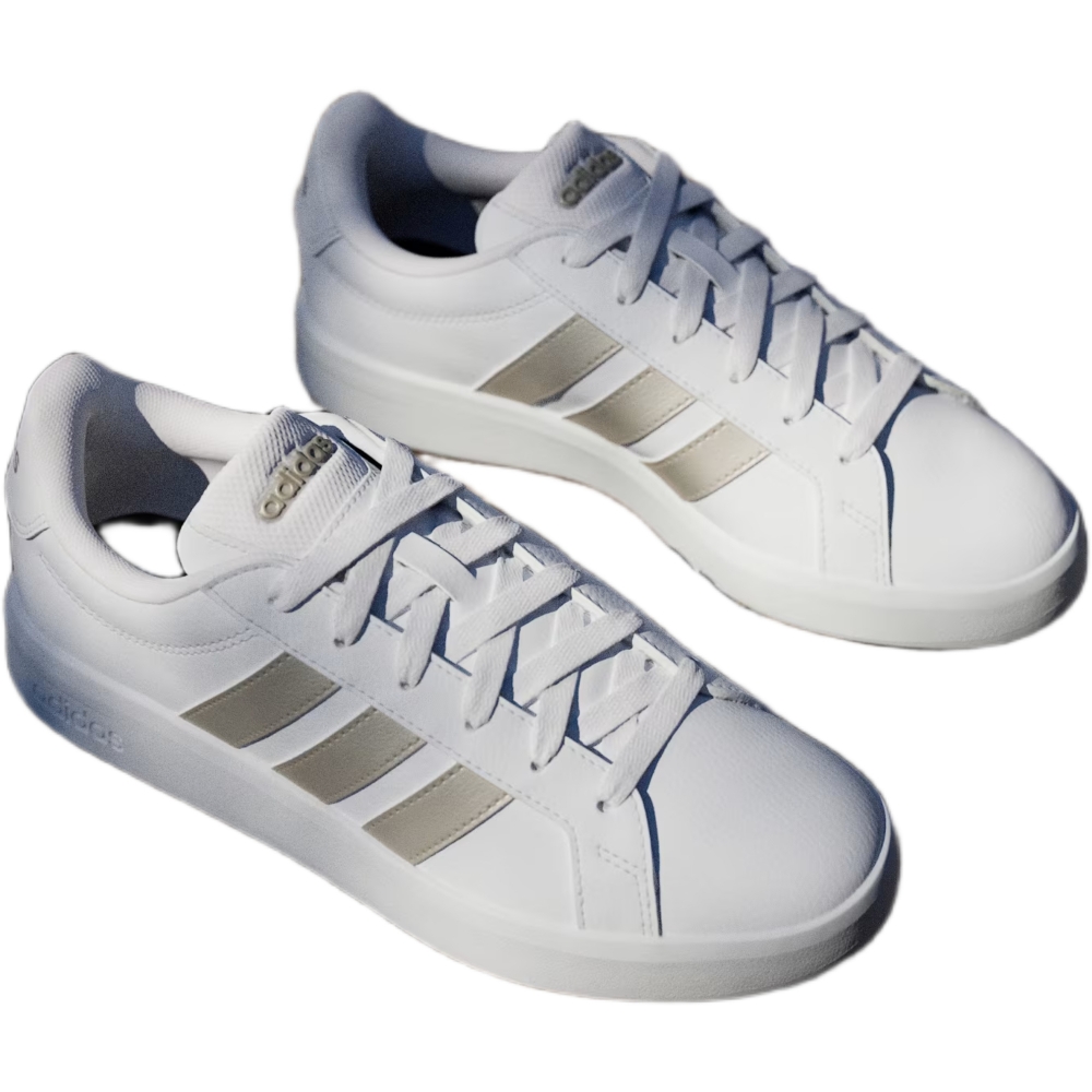 Queste sneakers adidas in bianco con dettagli cyber met uniscono uno stile pulito e sportivo a una grande versatilità per l’uso quotidiano e il tempo libero. La tomaia in pelle sintetica dona un aspetto ordinato e facile da mantenere, ideale da indossare in ogni stagione con jeans, pantaloni casual o outfit più sporty. Il design ispirato alle classiche silhouette da court rende questa scarpa una scelta perfetta per chi cerca comfort e un look essenziale, con un tocco luminoso dato dagli inserti metallizzati.