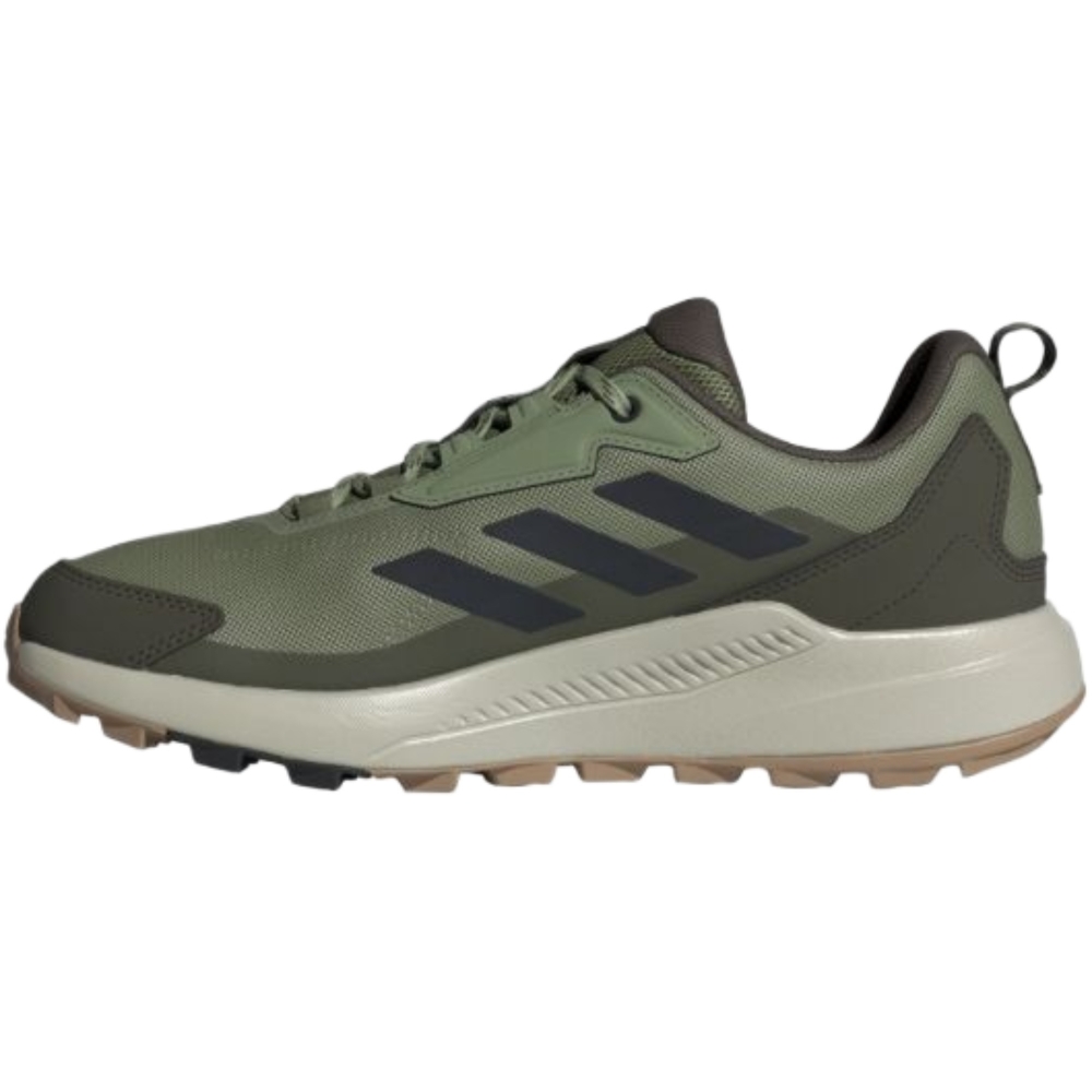 Le scarpe adidas Anylander sono pensate per attività outdoor e tempo libero, con un’impostazione trekking versatile e comoda per affrontare percorsi quotidiani e camminate nel weekend. La tomaia in tessuto con rinforzi sintetici offre un buon supporto e una calzata stabile, mentre la suola in gomma aiuta a mantenere aderenza e sicurezza su superfici diverse. La combinazione colori green, carbon e olive completa un look sportivo dal carattere naturale, facile da abbinare anche in città.