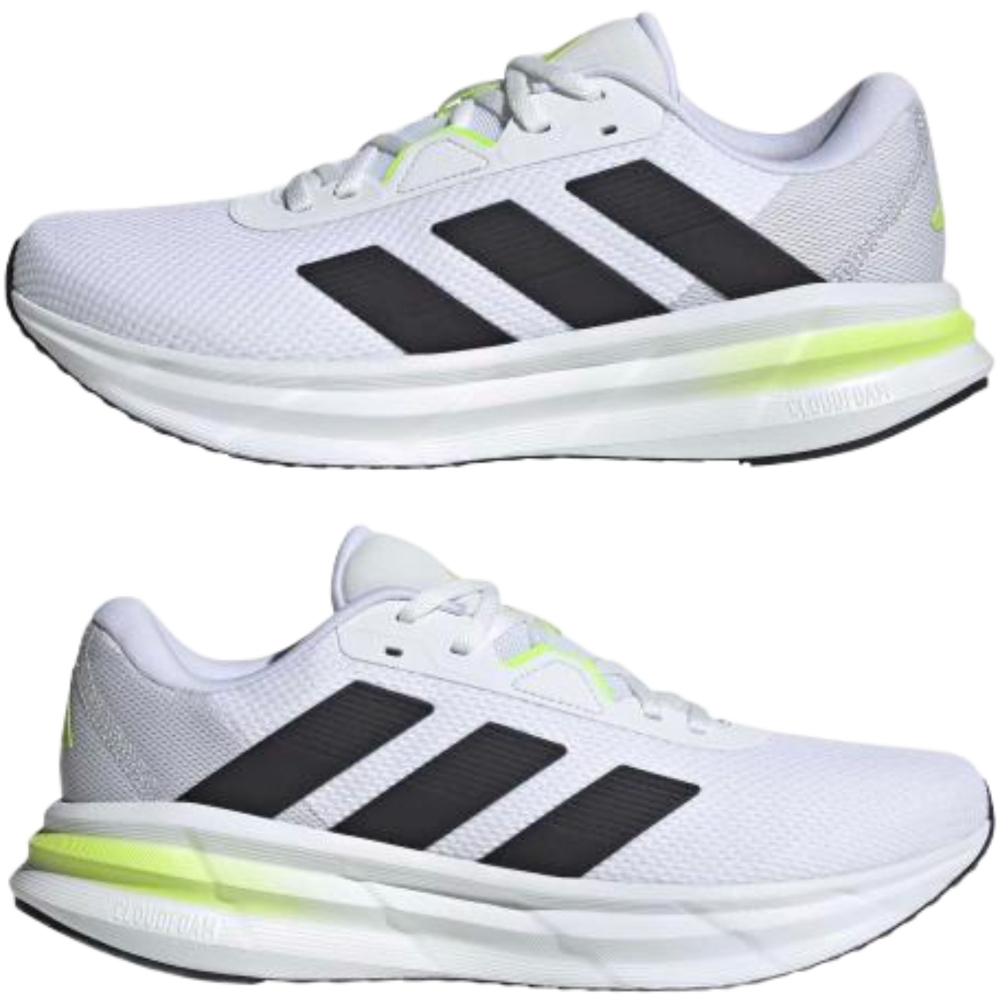 Scarpe running adidas Galaxy 7 M in bianco con dettagli neri e solar slime sono ideali per sport e tempo libero, con un look pulito e dinamico facile da abbinare. La tomaia in tessuto tecnico con rinforzi sintetici garantisce leggerezza e traspirabilità, offrendo supporto e comfort per camminate, allenamenti leggeri e uso quotidiano.