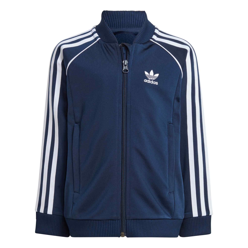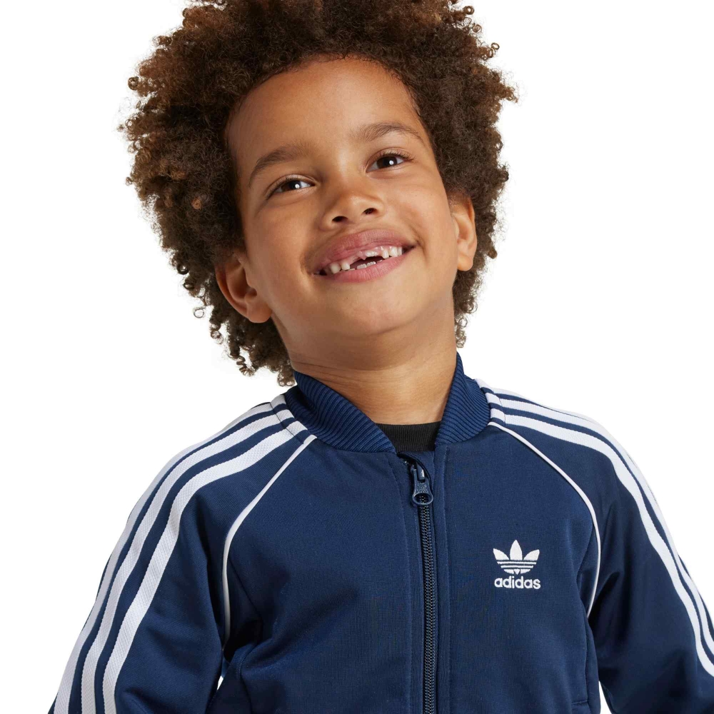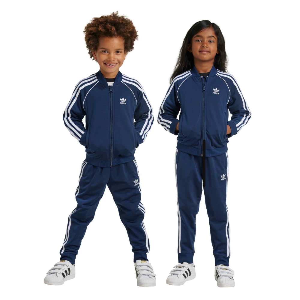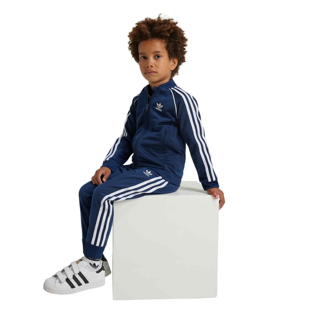 La adidas SST Track Suit Junior è un classico intramontabile pensato per accompagnare i più giovani nelle giornate di sport e tempo libero con stile e comfort. Realizzata in morbido tessuto tricot, offre una sensazione liscia e piacevole sulla pelle, garantendo libertà di movimento durante ogni attività. La giacca con zip intera e collo a coste, abbinata ai pantaloni con vita elasticizzata e orli aderenti, riprende il design iconico con le tre strisce laterali e il logo adidas a contrasto. La tonalità night indigo aggiunge un tocco elegante e sportivo allo stesso tempo, perfetto per un look coordinato e moderno. Ideale per l’allenamento, la scuola o il tempo libero, questa tuta combina praticità e stile inconfondibile, rendendola un capo essenziale nel guardaroba di ogni giovane atleta.