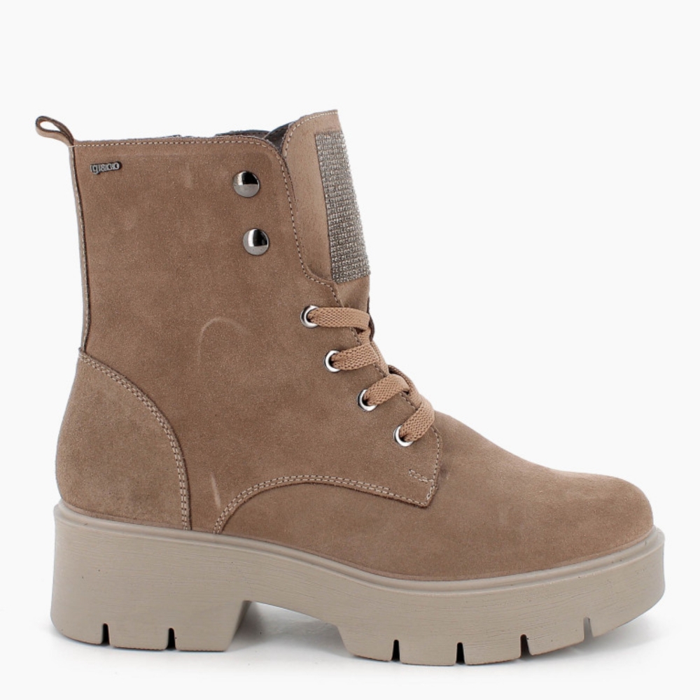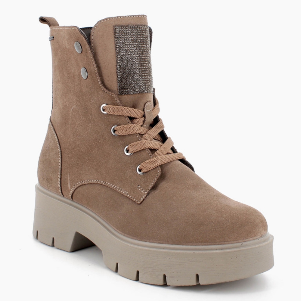 Tronchetto IGI & CO con allacciatura, in colore fango e realizzata in morbido camoscio. Il modello Stefy è pensato per l’inverno e per l’uso quotidiano, con uno stile versatile che si abbina facilmente a jeans e pantaloni, offrendo comfort e un look curato in ogni occasione.
