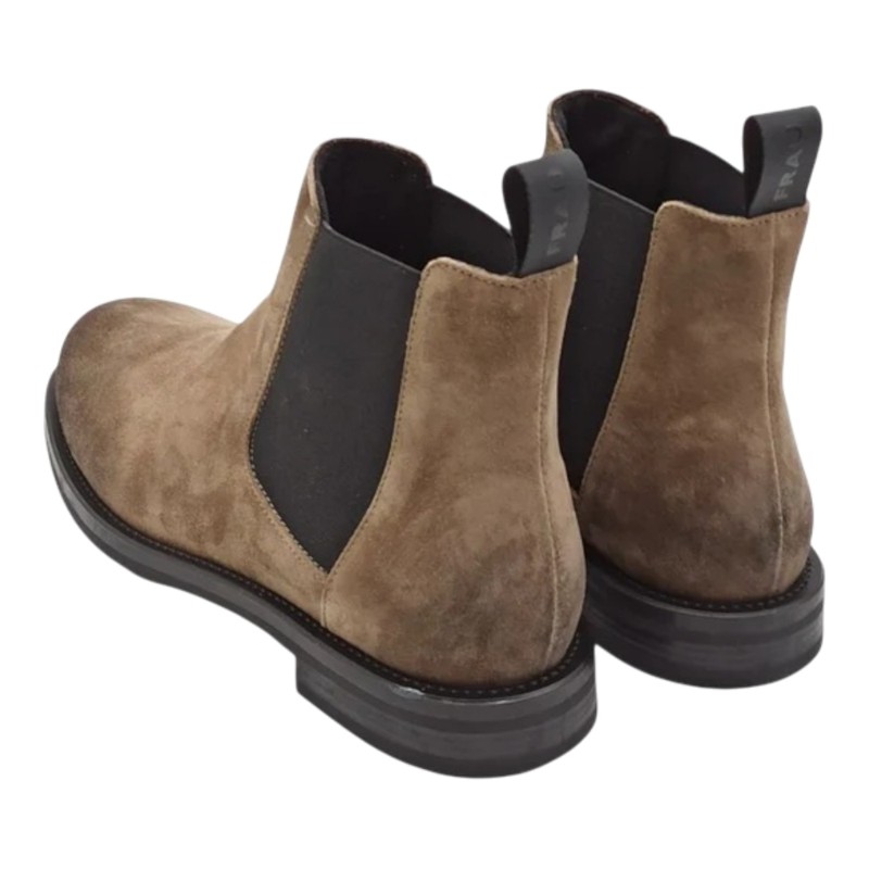 Tronchetto in vero camoscio, punta tonda, bande laterali elasticizzata, tallone rinforzato, suola in gomma.
