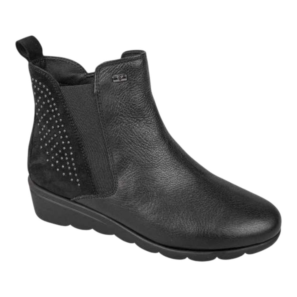 Il tronchetto da donna VALLEVERDE in nappa e camoscio nero è una calzatura elegante e confortevole, pensata per affrontare la stagione invernale con stile e praticità. La combinazione dei due materiali pregiati — la morbida nappa e il raffinato camoscio — crea un piacevole contrasto di texture che valorizza la linea sobria e contemporanea del modello. Il design essenziale, impreziosito da dettagli curati e un tacco comodo, offre una calzata stabile e confortevole ideale per l’uso quotidiano. Il nero profondo dona versatilità ed eleganza, rendendo questo tronchetto perfetto per completare con gusto sia look casual che outfit più raffinati. Una scarpa dal fascino discreto, espressione dell’artigianalità e della qualità tipiche di VALLEVERDE, pensata per la donna che desidera unire comfort e stile senza compromessi.