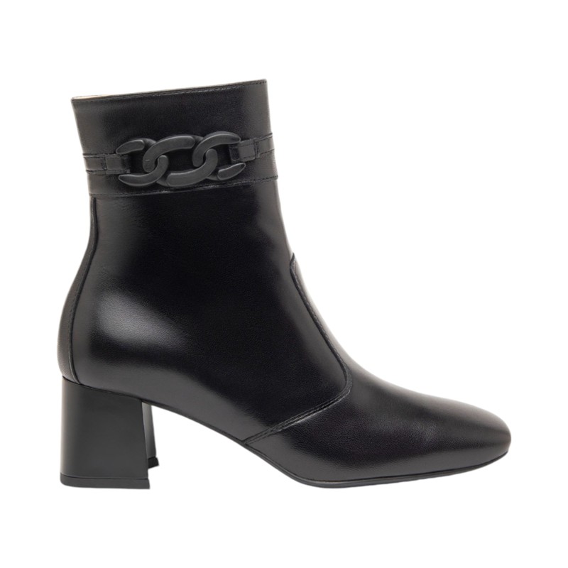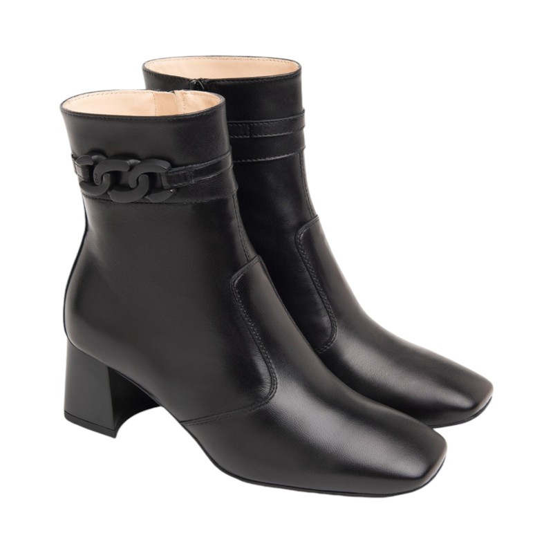 Tronchetto in vera pelle, dettaglio intrecciato laterale, punta tonda, tallone rinforzato, suola con tacco, Made in Italy.