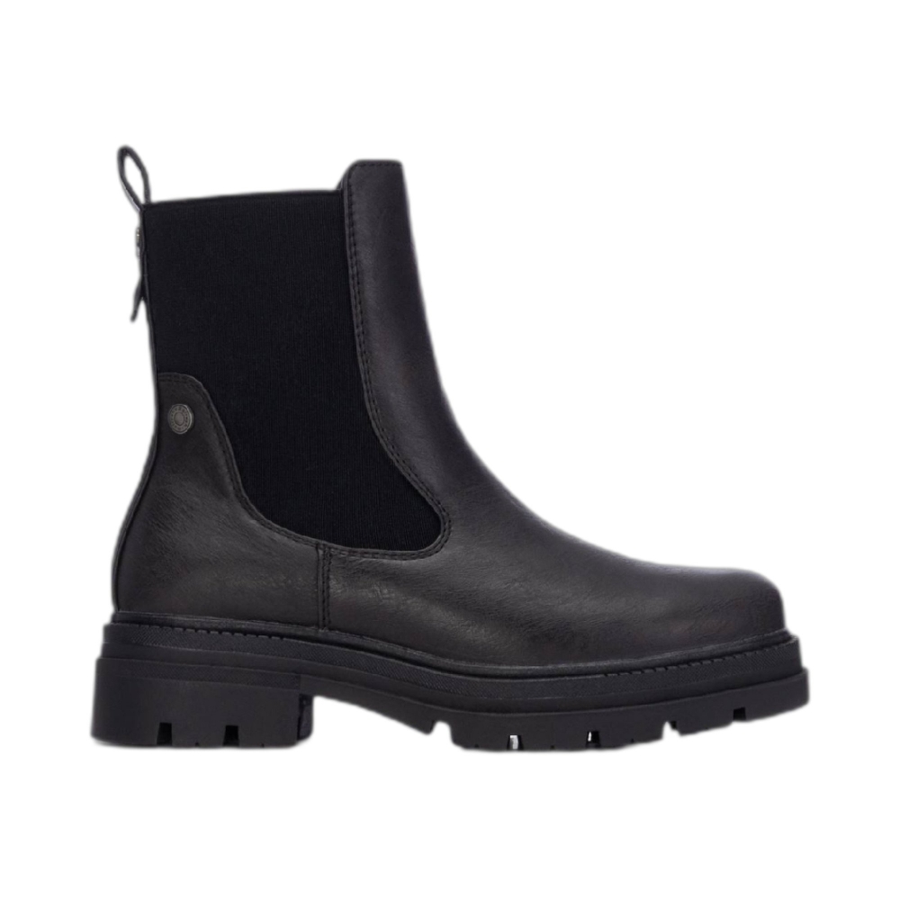 Tronchetto in similpelle, bande laterali elasticizzate, punta tonda, tallone rinforzato, suola in gomma.