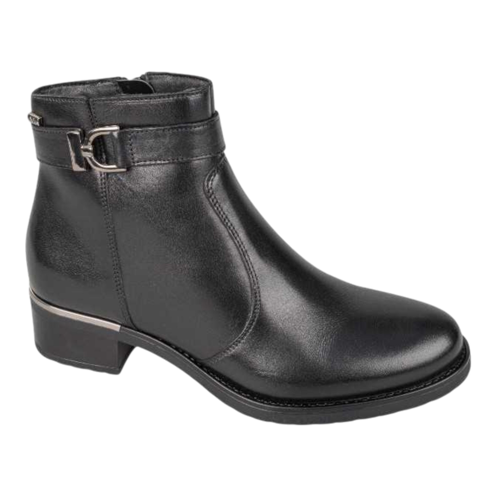 Il tronchetto da donna VALLEVERDE in vitello nero è un modello elegante e senza tempo, pensato per accompagnare la stagione invernale con stile e comfort. Realizzato in pelle di vitello di alta qualità, si distingue per la morbidezza e la resistenza del materiale, che avvolge il piede garantendo una calzata naturale e piacevole. Il design minimal e raffinato, arricchito da dettagli curati e da una linea pulita, lo rende perfetto per completare con classe qualsiasi look, dal più casual al più sofisticato. La suola stabile e il tacco comodo offrono equilibrio e sostegno durante tutta la giornata, mentre il nero, intramontabile e versatile, ne esalta l’eleganza discreta. Un tronchetto dal fascino sobrio e raffinato, firmato VALLEVERDE, ideale per la donna che cerca stile e comfort in ogni occasione.