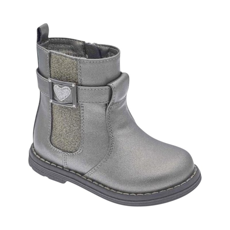 Stivaletto in similpelle verniciata e tessuto con strass applicati, logo a contrasto, punta tonda, tallone rinforzato, suola in gomma.
