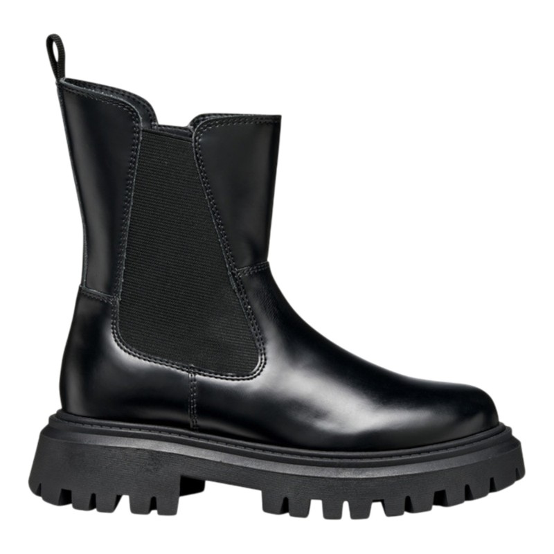 Tronchetto in similpelle dal design contemporaneo con bande elastiche laterali, punta tonda, chiusura con zip laterale, fettuccia applicata, intersuola realizzata con tecnologia Respira