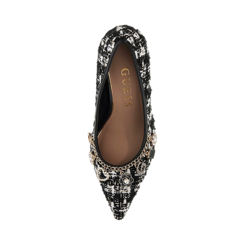 ettaglio catena con charm scritta logo, cuore, fiore e lucchetto, s