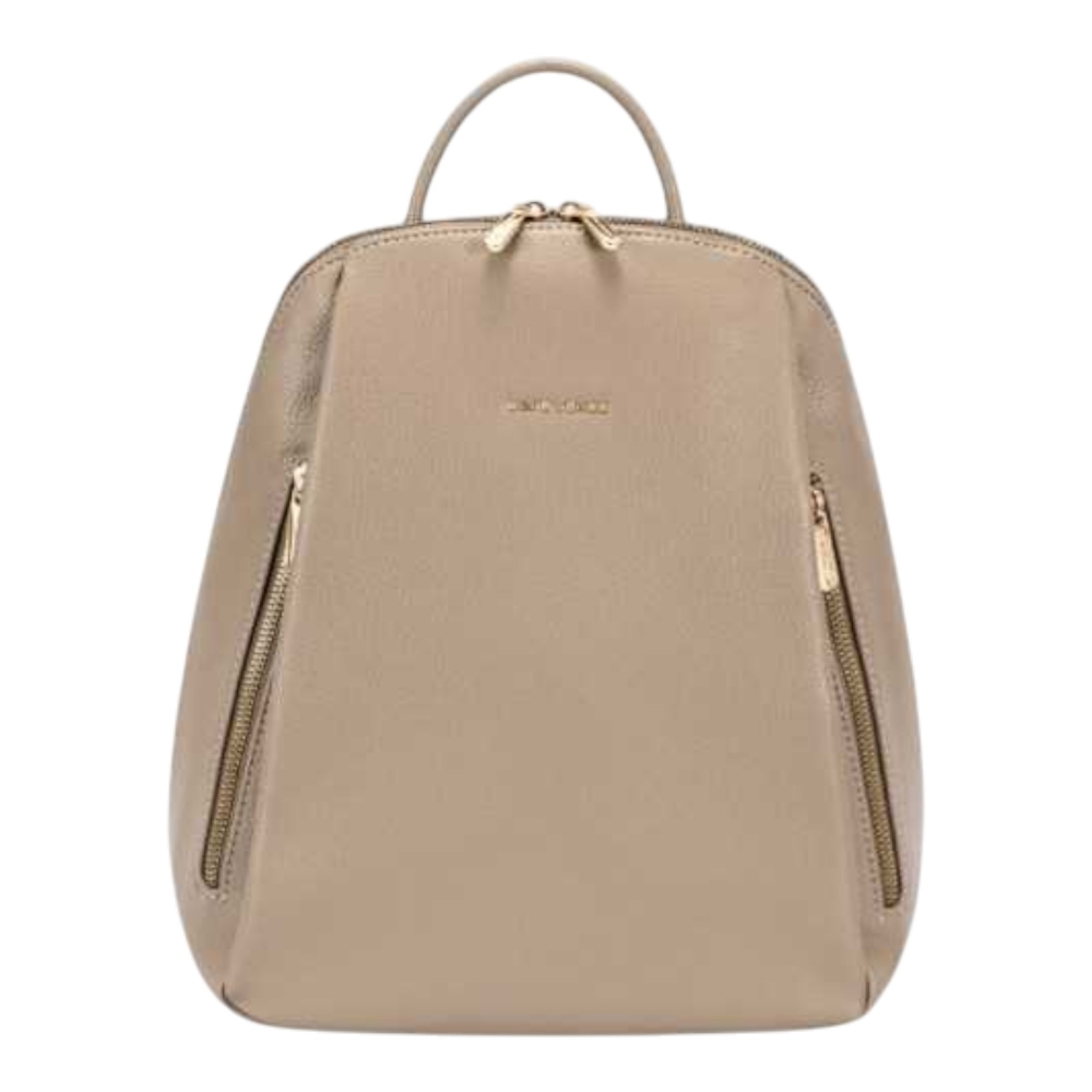 Zainetto David Jones in resistente poliuretano che unisce eleganza e praticità. Con dimensioni compatte 28x30x12 cm, è perfetto per l’uso quotidiano, ideale per completare look casual e urbani. Il design moderno e il colore taupe caldo lo rendono un accessorio versatile per ogni stagione.