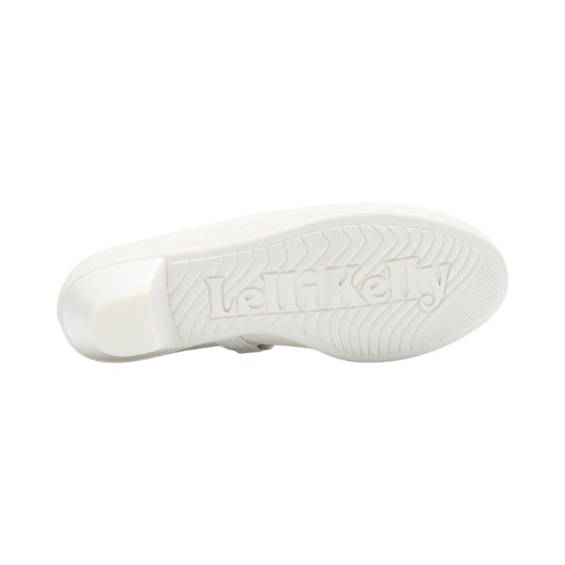 Ballerina in tessuto glitter, punta tonda, fiocco applicato, fettuccia con velcro, logo ricamato laterale tono su tono, suola con tacchetto.